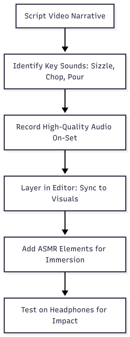 Sound amplifies visuals, triggering appetite through ASMR-like elements. Integrate it early in planning to enhance concepts.