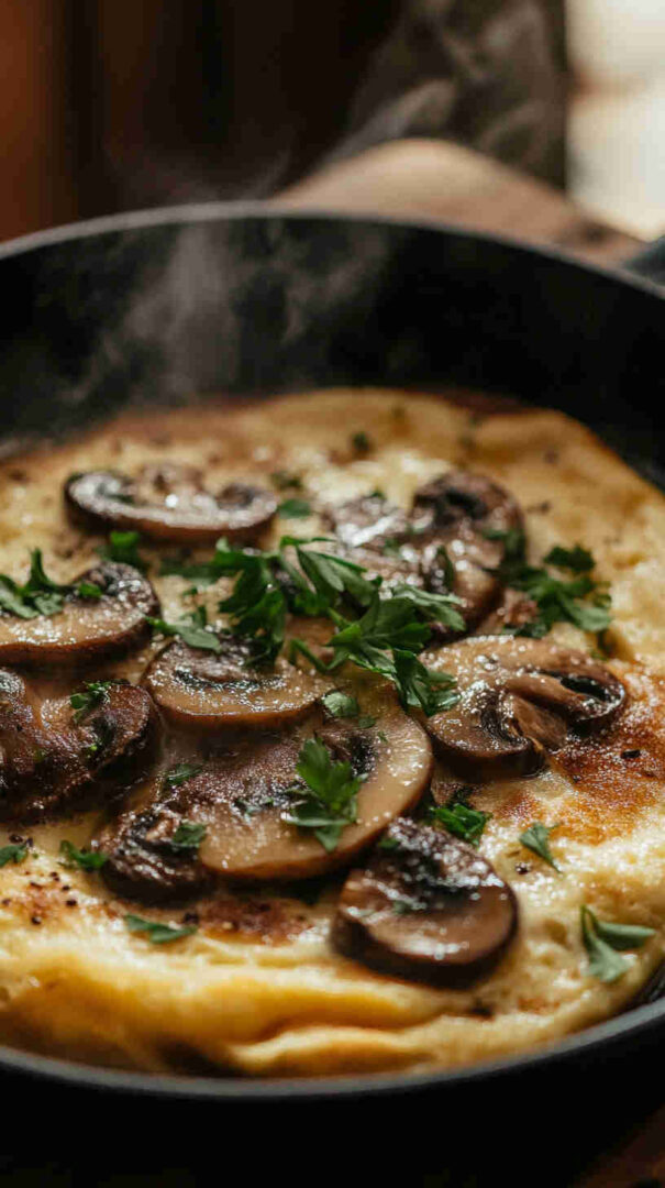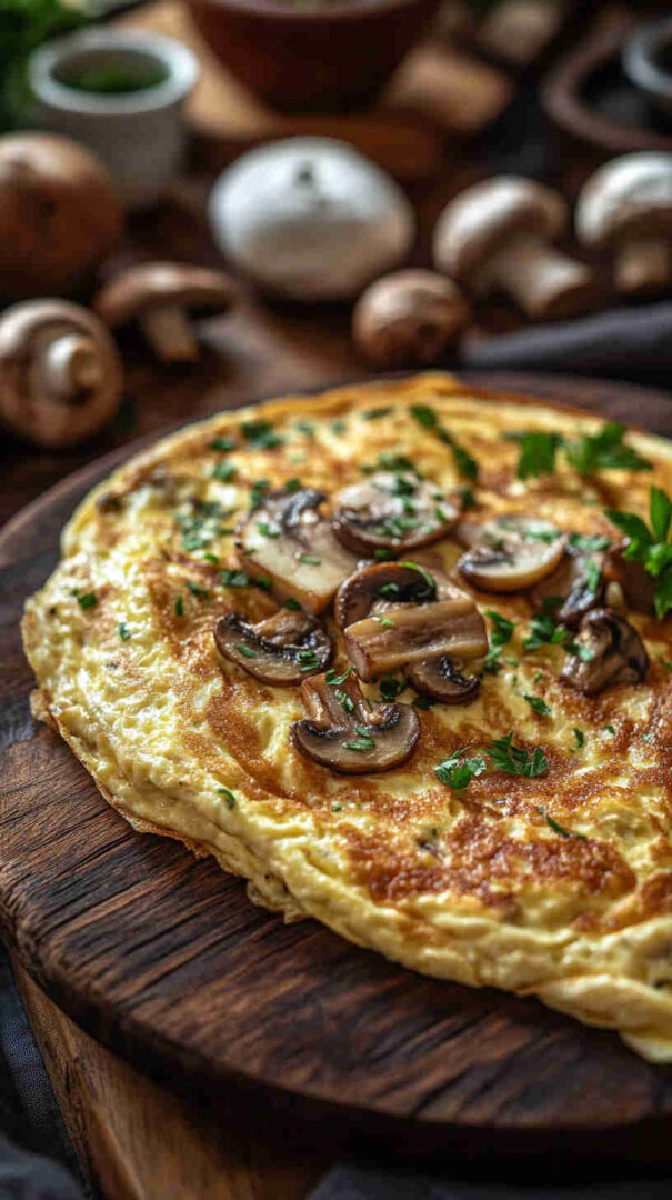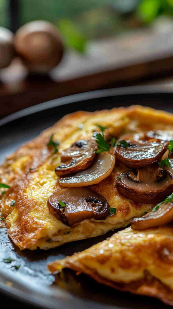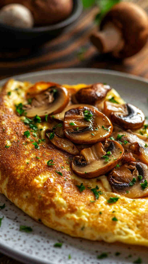 Use a non-stick pan for easy flipping and to prevent sticking—medium heat is key to avoid burning the eggs while keeping them fluffy. Sauté mushrooms first until golden and moisture evaporates for deeper flavor (don’t overcrowd the pan).