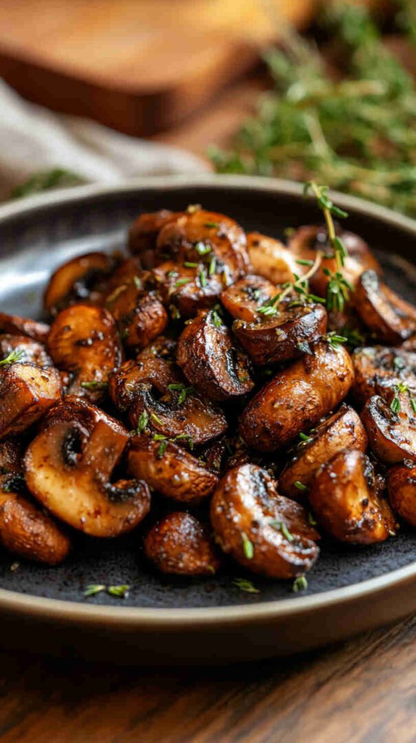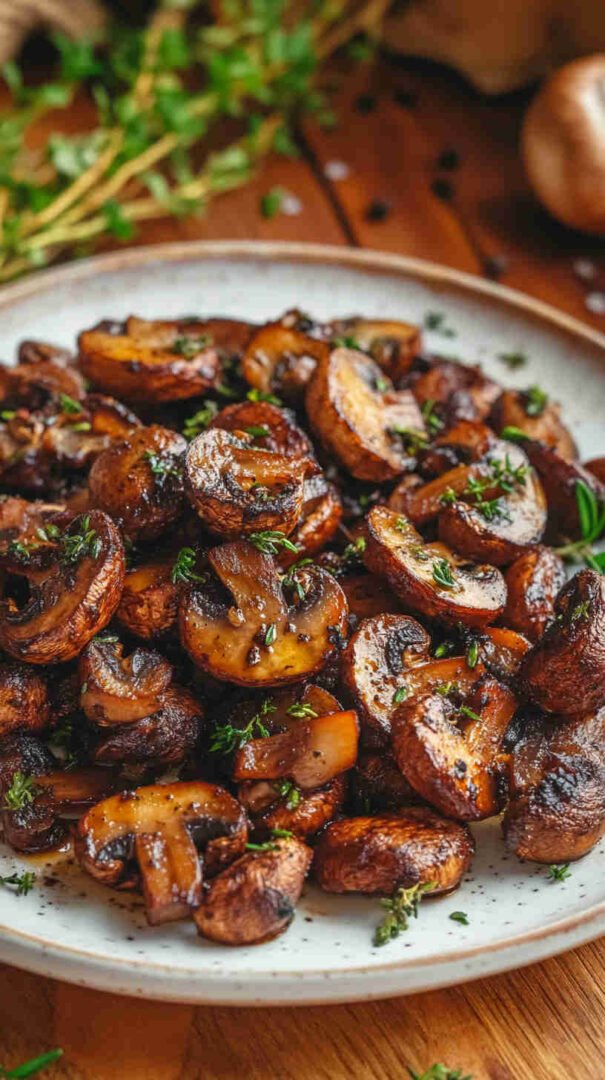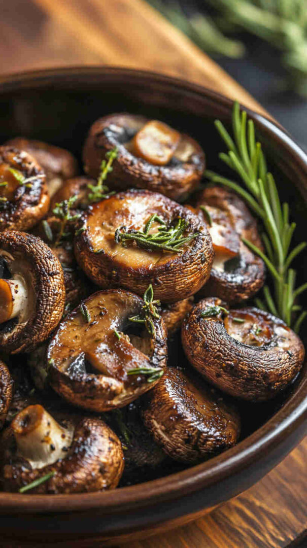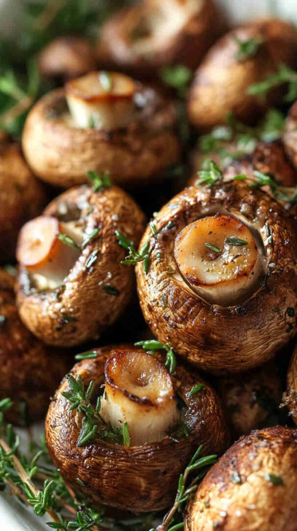 Baby bella (cremini) mushrooms are the star—they hold their shape well, offer deep earthy flavor, and develop beautiful golden edges. White button mushrooms work as a milder substitute. Olive oil or avocado oil provides healthy fat for crisping without burning. Fresh garlic cloves bring pungent aroma (mince finely for even distribution), while dried thyme and rosemary add classic herbal notes that pair magically with mushrooms’ umami.