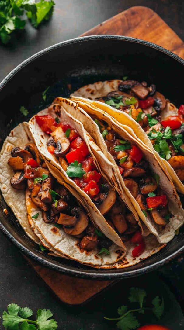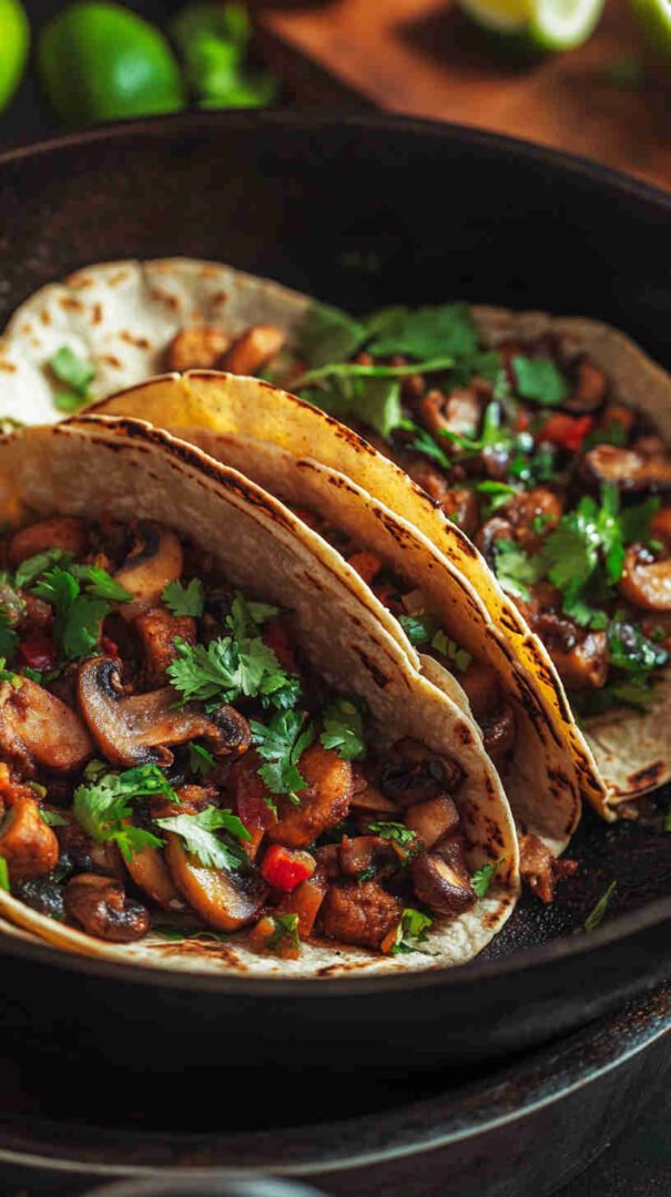 - Build your dream tacos! Pile the crispy mushroom filling into warm tortillas, then load on your favorite toppings — avocado, cilantro, onion, salsa, whatever makes your heart sing. Dig in and enjoy every savory, smoky bite!