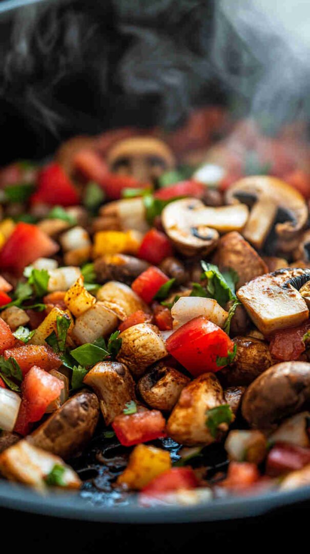 Portobello or cremini mushrooms are the stars here — portobellos give big, steak-like slices and intense flavor, while cremini (baby bellas) offer a slightly nuttier taste and hold their shape well. Soy sauce or tamari adds deep umami and saltiness (use low-sodium if watching salt intake).