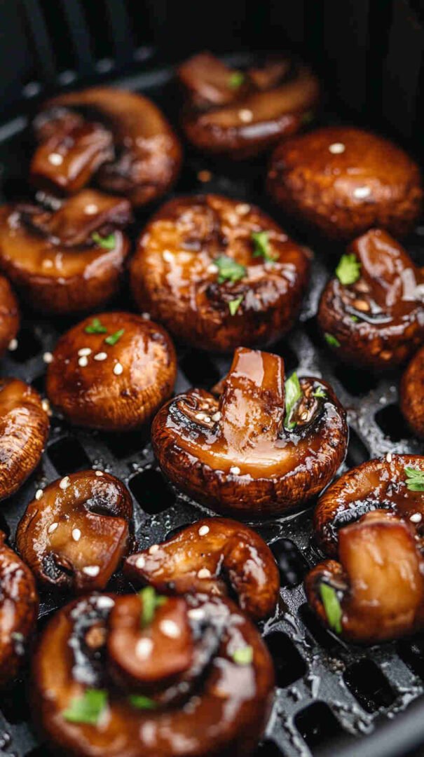 - For extra sticky glaze, toss mushrooms in half the sauce before air frying and brush on the rest at the end.