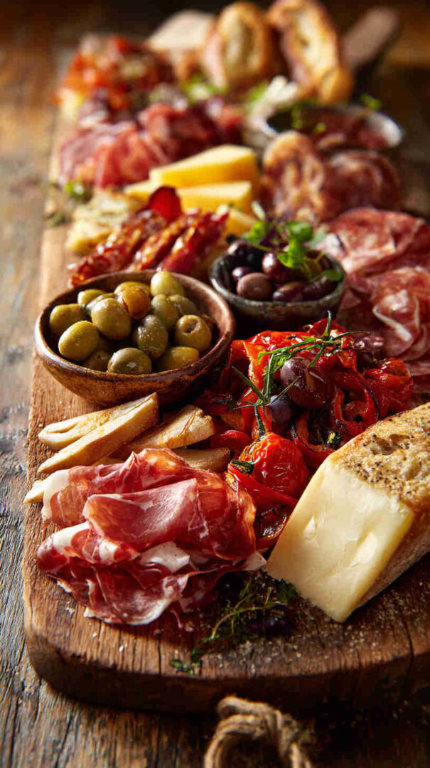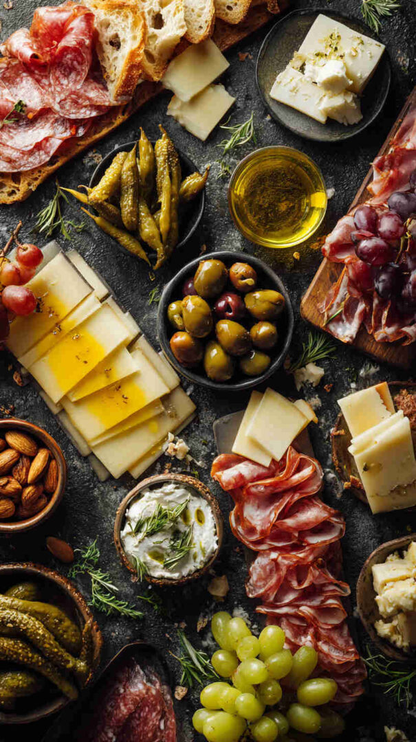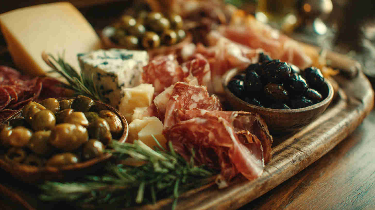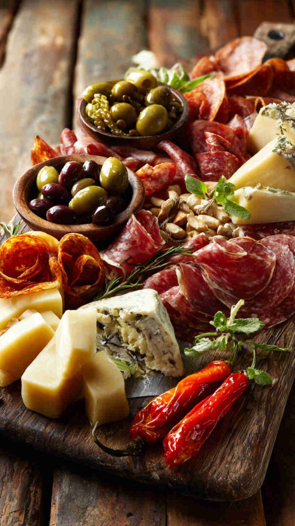 Go lighter with turkey or chicken-based cured alternatives if avoiding pork. Dairy-free? Use plant-based cheeses and focus on veggies, olives, nuts, and fruits. Add seafood like anchovies, tuna, or shrimp for a coastal twist.