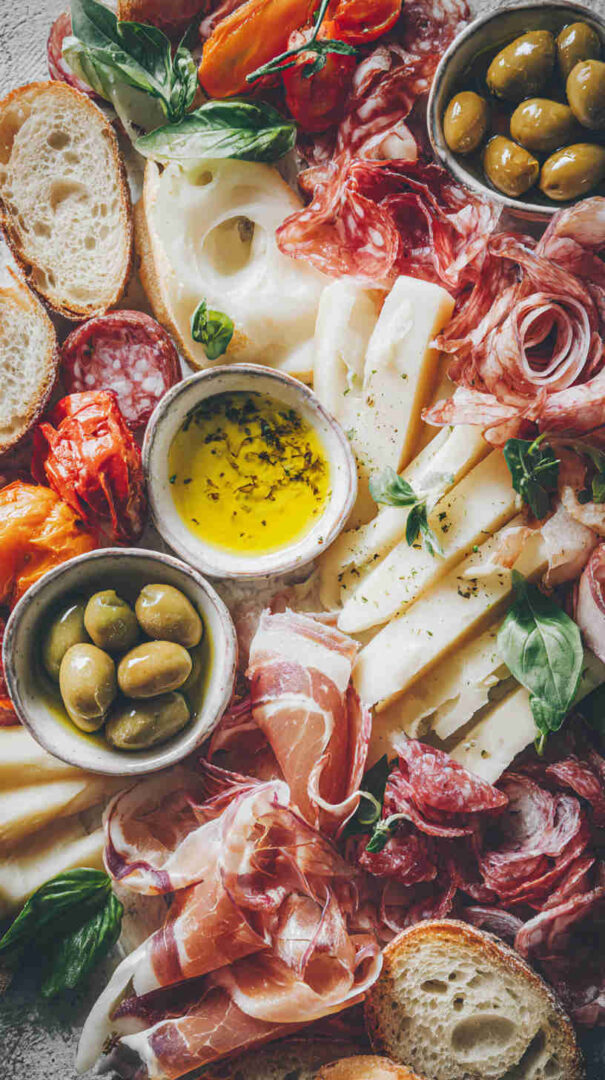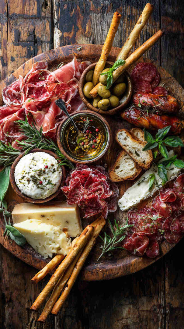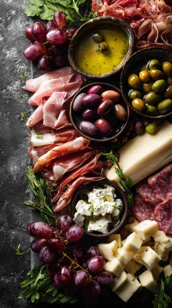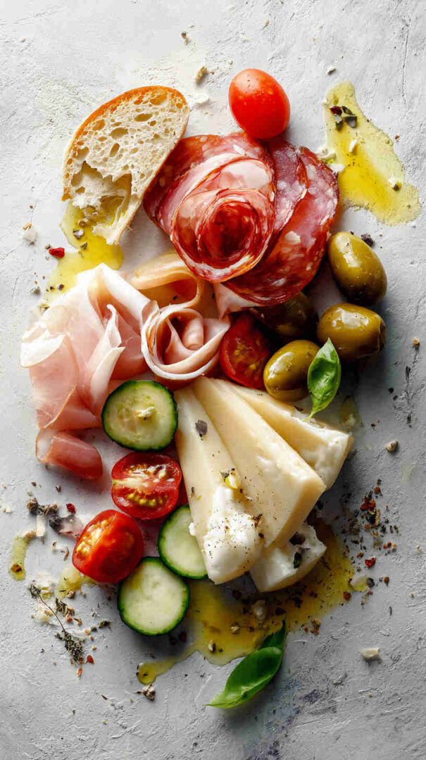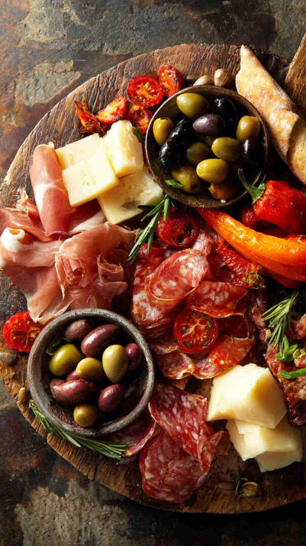 Go lighter with turkey or chicken-based cured alternatives if avoiding pork. Dairy-free? Use plant-based cheeses and focus on veggies, olives, nuts, and fruits. Add seafood like anchovies, tuna, or shrimp for a coastal twist.