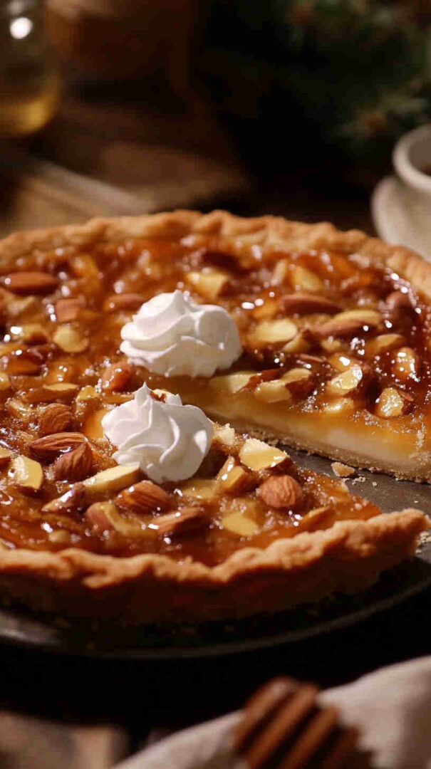 Make it nuttier by adding a handful of chopped toasted almonds into the frangipane or using almond extract for extra intensity. For a dairy-free option, replace butter with vegan margarine or coconut oil (though flavor shifts slightly). Turn it vegan by using egg replacers (like flax eggs) in the crust and filling, plus plant-based butter.