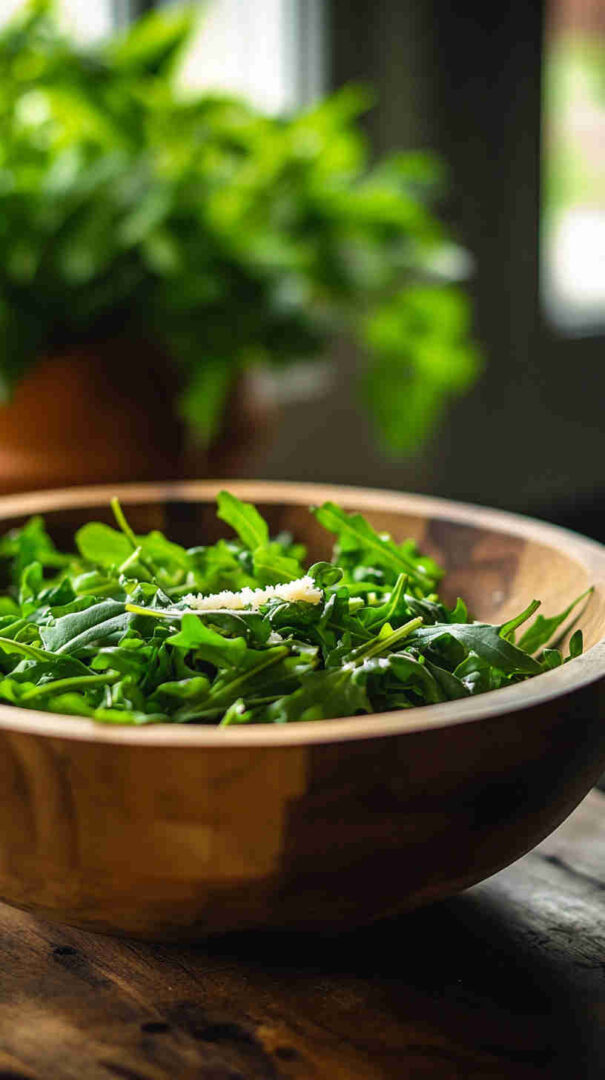 - Taste and adjust. Taste a leaf—add more dressing, salt, or pepper if needed. The arugula should be lightly coated, not soggy.