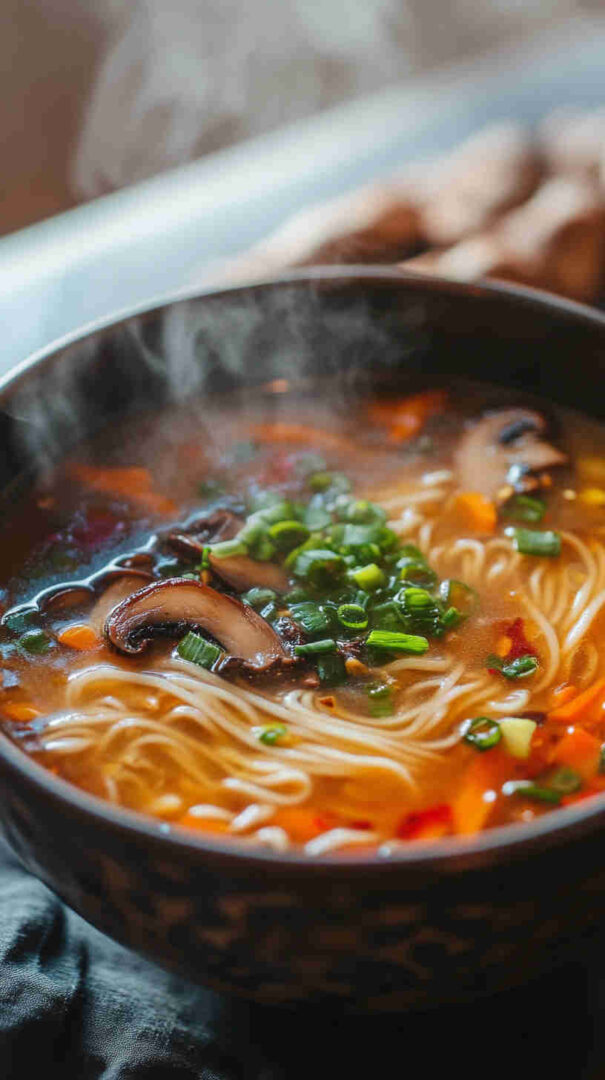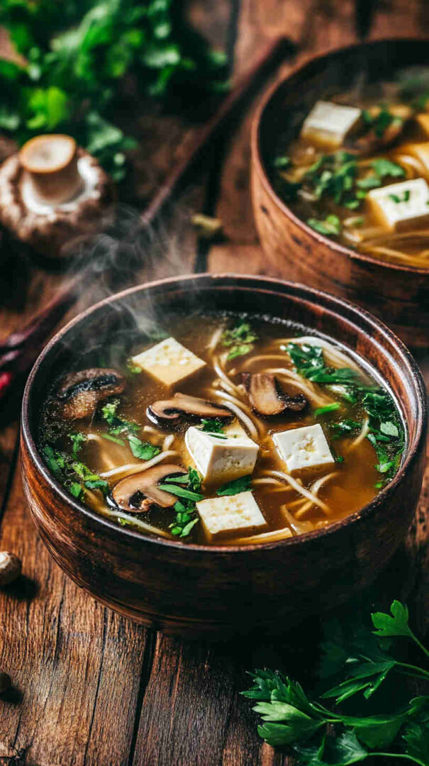 Cozy, umami-rich miso broth with earthy mushrooms, tender noodles, and fresh greens—quick, healthy, and deeply satisfying.