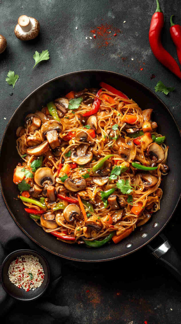 This vibrant Asian Mushroom Rice Noodle Stir Fry is a quick, flavor-packed dish loaded with umami-rich shiitake, oyster, and cremini mushrooms tossed in a glossy garlic-ginger-soy sauce with tender rice noodles, crisp vegetables, and aromatic sesame oil—pure comfort in under 30 minutes.