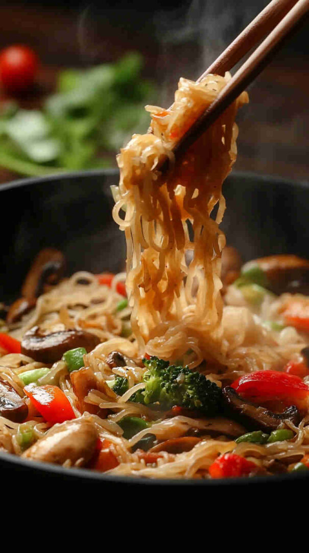 Protein boosters: add crispy tofu cubes, tempeh, seitan, scrambled eggs, or thinly sliced beef/chicken/shrimp in the last 3 minutes. Low-carb version: swap rice noodles for zucchini noodles, shirataki, or cauliflower rice.
