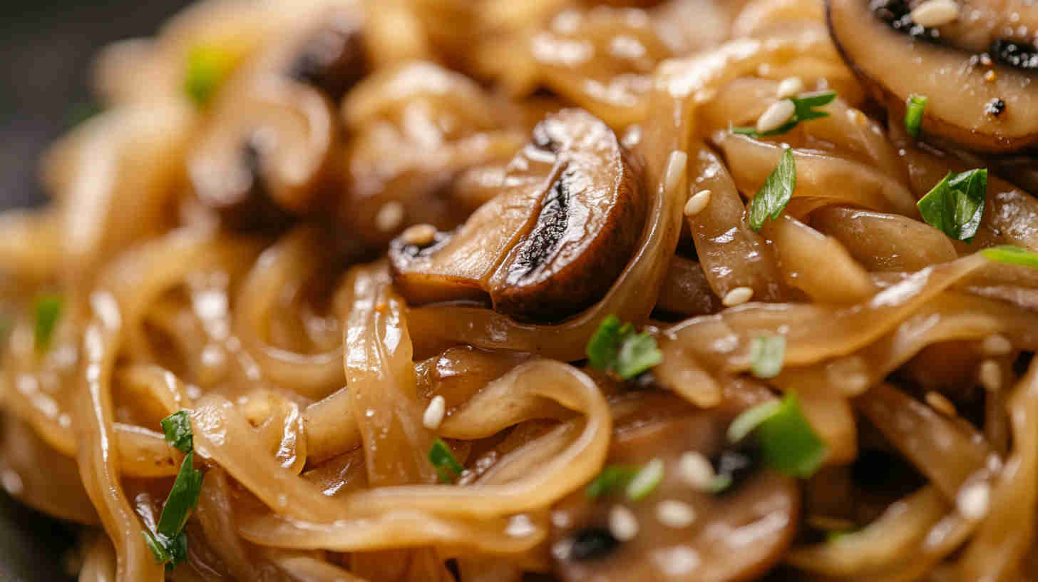 Quick, umami-packed Asian mushroom rice noodle stir fry with garlic-ginger sauce—vegan, gluten-free, and ready in 30 minutes.