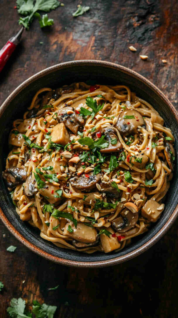 Asian Peanut Mushroom Noodles Recipe