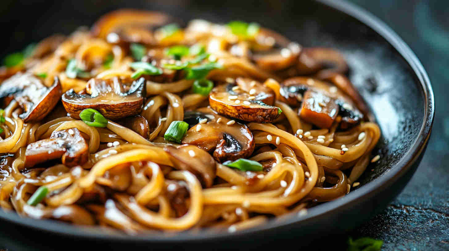 This vibrant Asian-inspired noodle dish features tender mushrooms stir-fried with fragrant fresh ginger and garlic, then tossed in a glossy soy-sesame sauce. Silky noodles soak up the umami-rich flavors, creating a quick, satisfying vegetarian meal that’s savory, slightly sweet, and perfectly balanced with a hint of heat — ready in under 30 minutes!