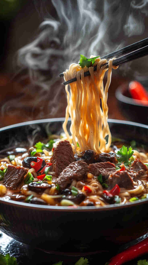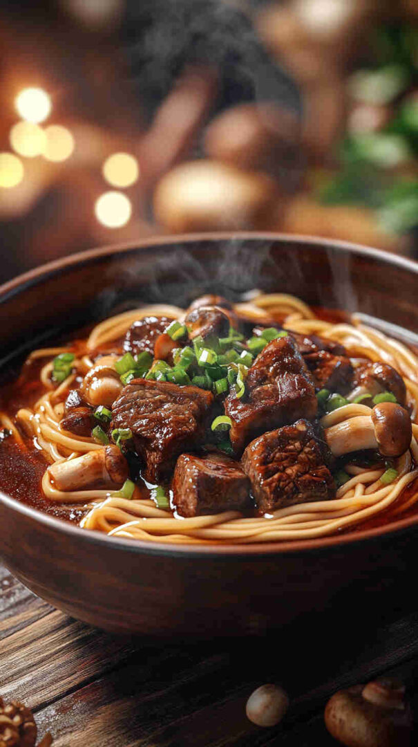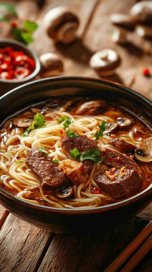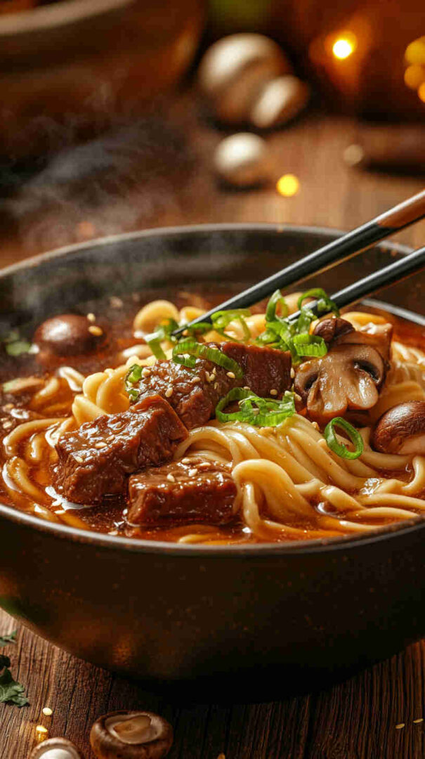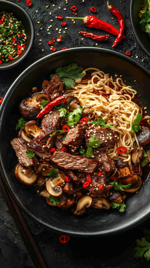 Quick stir-fried beef, earthy mushrooms, and noodles in savory Asian sauce—tender, umami-rich comfort food ready fast!