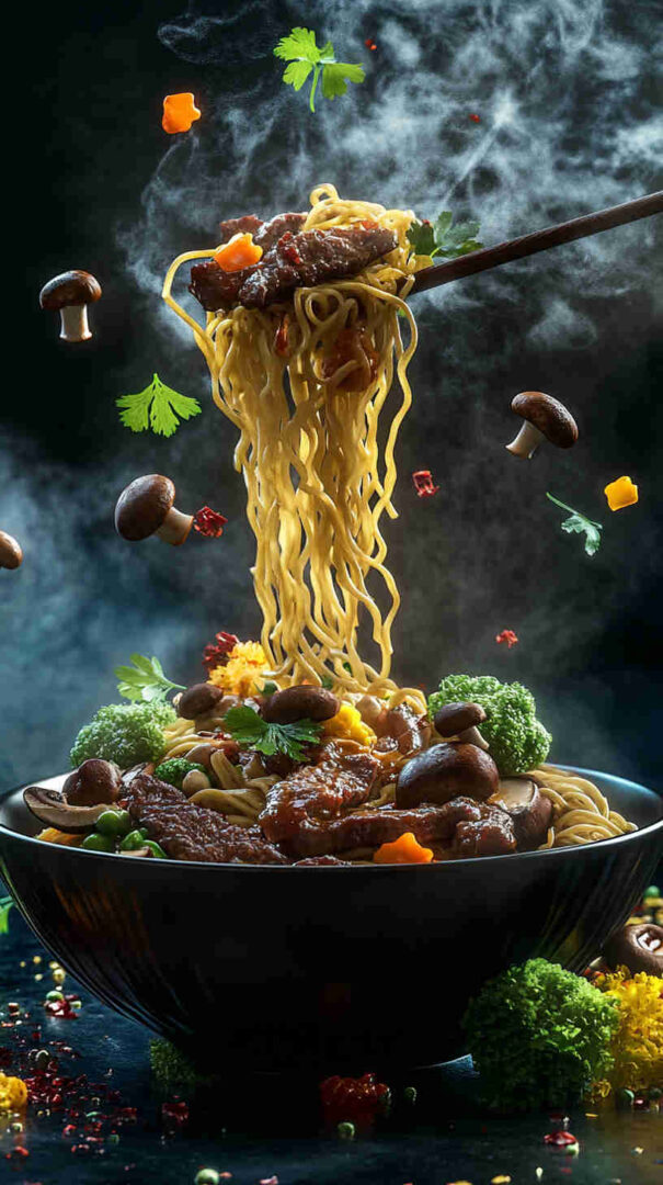 Savor tender slices of beef stir-fried with juicy mushrooms, aromatic garlic, ginger, and a rich soy-oyster sauce, all tangled with springy noodles for a hearty, umami-packed meal. This Asian-inspired dish brings restaurant-quality flavors to your table in under 30 minutes—simple, satisfying, and endlessly craveable.