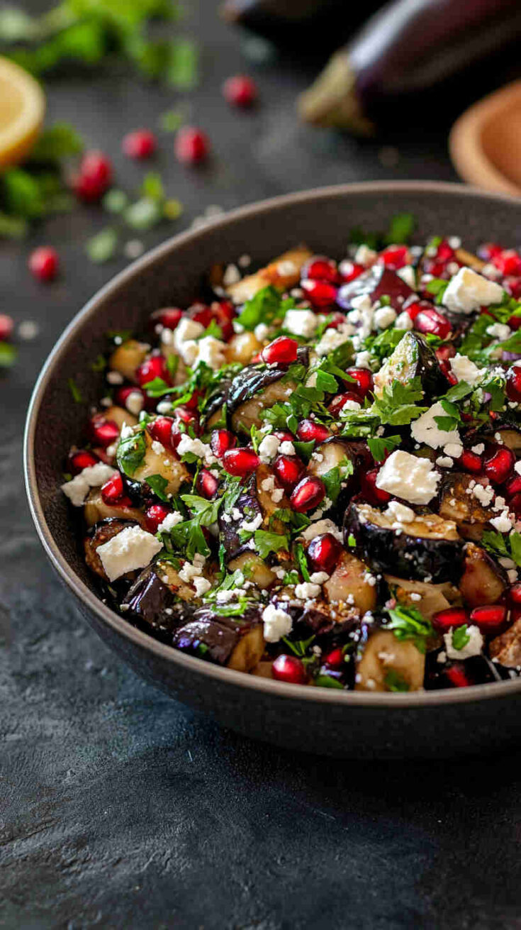 This salad is a nutritious, vibrant dinner option that transforms roasted aubergine with juicy pomegranate seeds into a delightful treat, perfect for a healthy meal. Easy to prepare, it’s packed with antioxidants, fiber, and taste. Versatile—enjoy with bread or alone—this recipe offers a wholesome, refreshing indulgence.