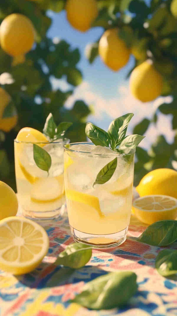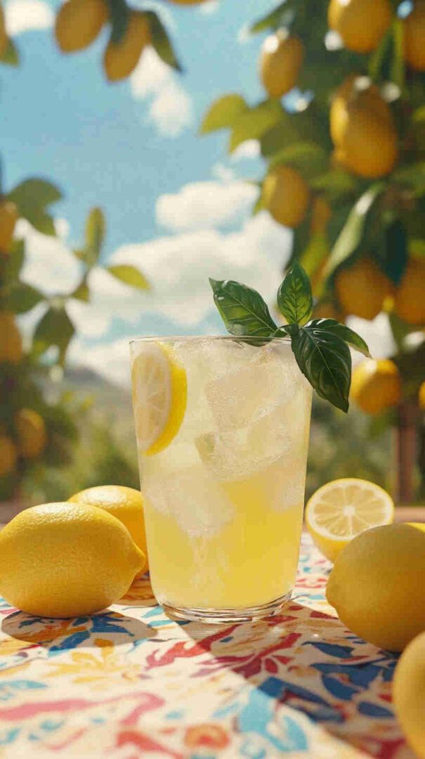 - Fill tall glasses generously with ice cubes, pour the sparkling lemonade over the top, and garnish with a fresh lemon slice or twist and a sprig of basil. Serve immediately with a big smile and enjoy the taste of sunny Italy in every sip!