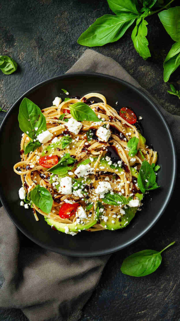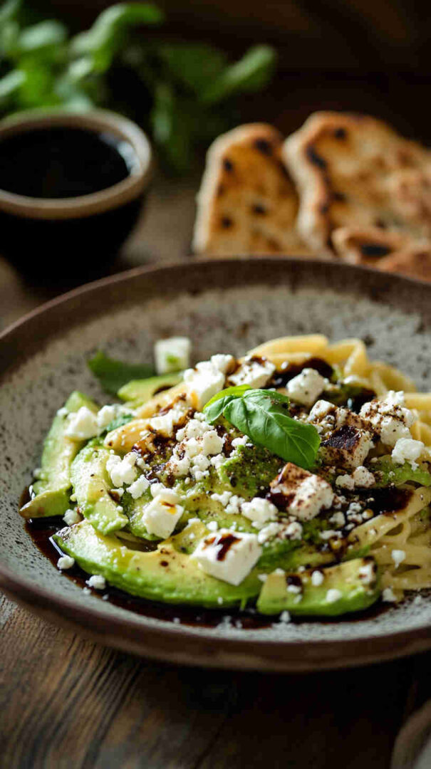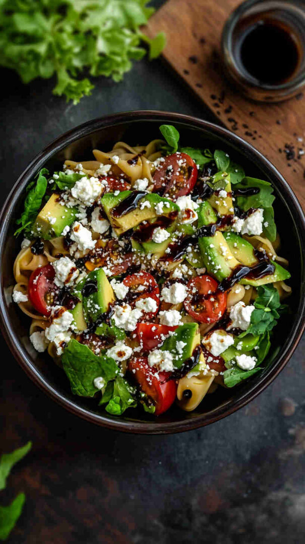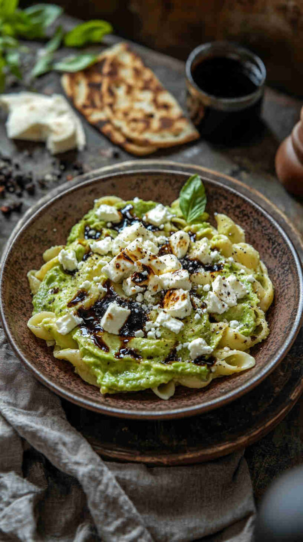 This fresh Avocado and Feta Pasta with Balsamic Glaze combines creamy mashed avocado with tangy crumbled feta for a luscious, no-cook sauce that’s tossed with warm pasta. Bright cherry tomatoes, garlic, and herbs add vibrancy, while a drizzle of sweet-tangy balsamic glaze elevates every bite into a Mediterranean-inspired delight that’s light yet satisfying.