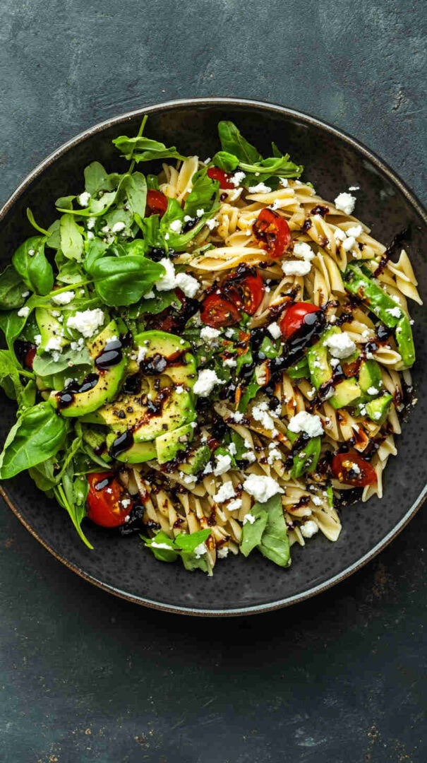 Avocado and Feta Pasta with Balsamic Glaze