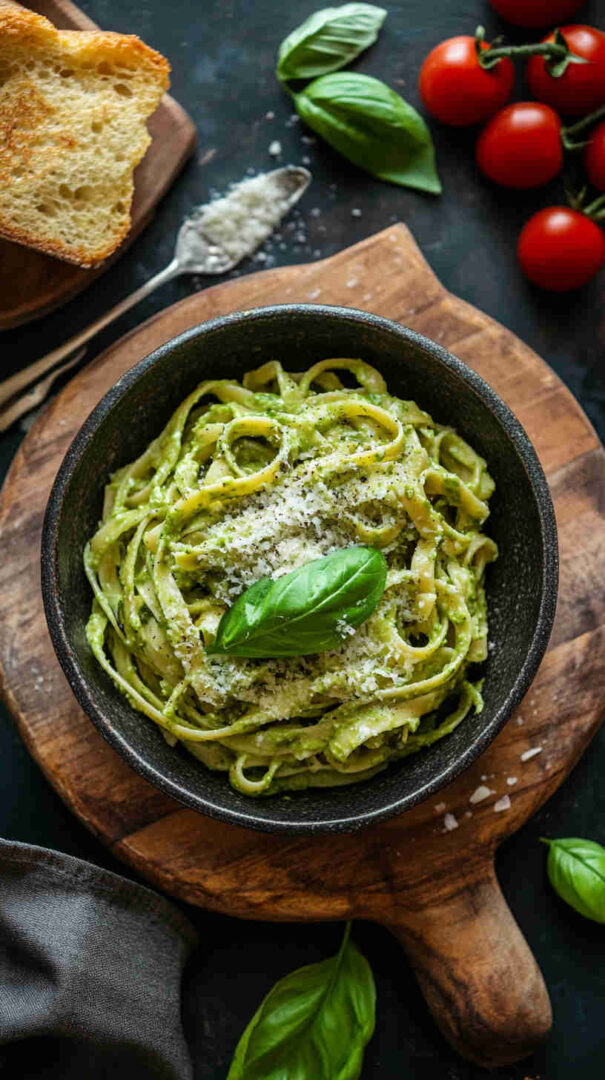 For gluten-free, choose chickpea or lentil pasta—they add extra protein too. Add toasted pine nuts or walnuts for crunch and classic pesto vibe. For a cold pasta salad version, chill everything and serve with extra fresh tomatoes and herbs. If avoiding oil, thin sauce with more pasta water or a splash of plant milk.