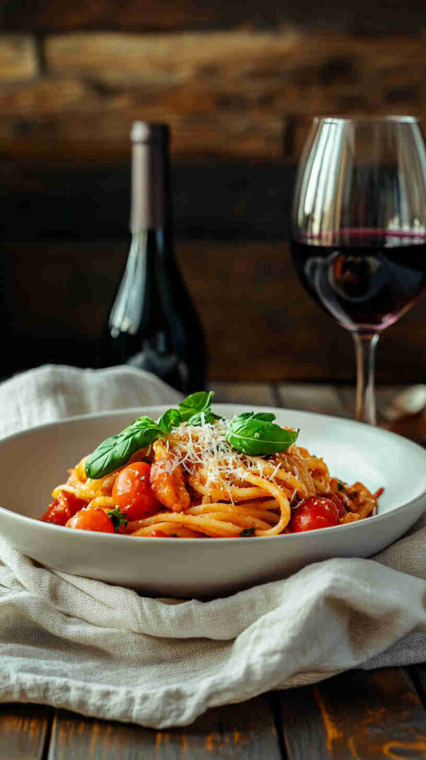 Parmesan cheese (Parmigiano-Reggiano preferred) brings salty, nutty umami and classic Italian finish—grate fresh for best melt and taste. Pasta like spaghetti, linguine, or penne holds the chunky tomatoes and creamy sauce well. Salt, black pepper, and optional fresh basil or parsley finish with herbal freshness.
