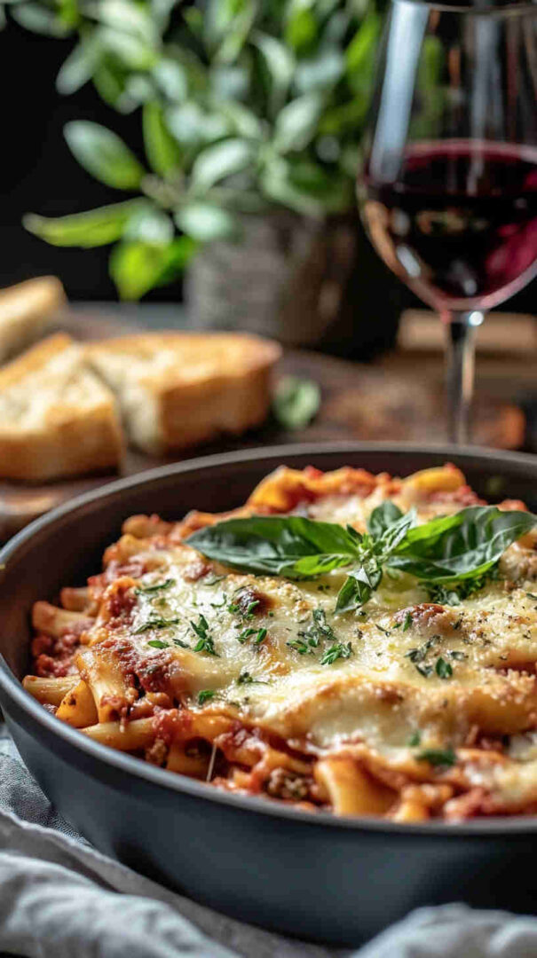 Make it vegan with plant-based mozzarella and skip or use nutritional yeast for cheesy umami. Add protein with Italian sausage, ground turkey, lentils, or chickpeas layered in. Boost veggies with spinach, zucchini, mushrooms, or roasted eggplant mixed into sauce.