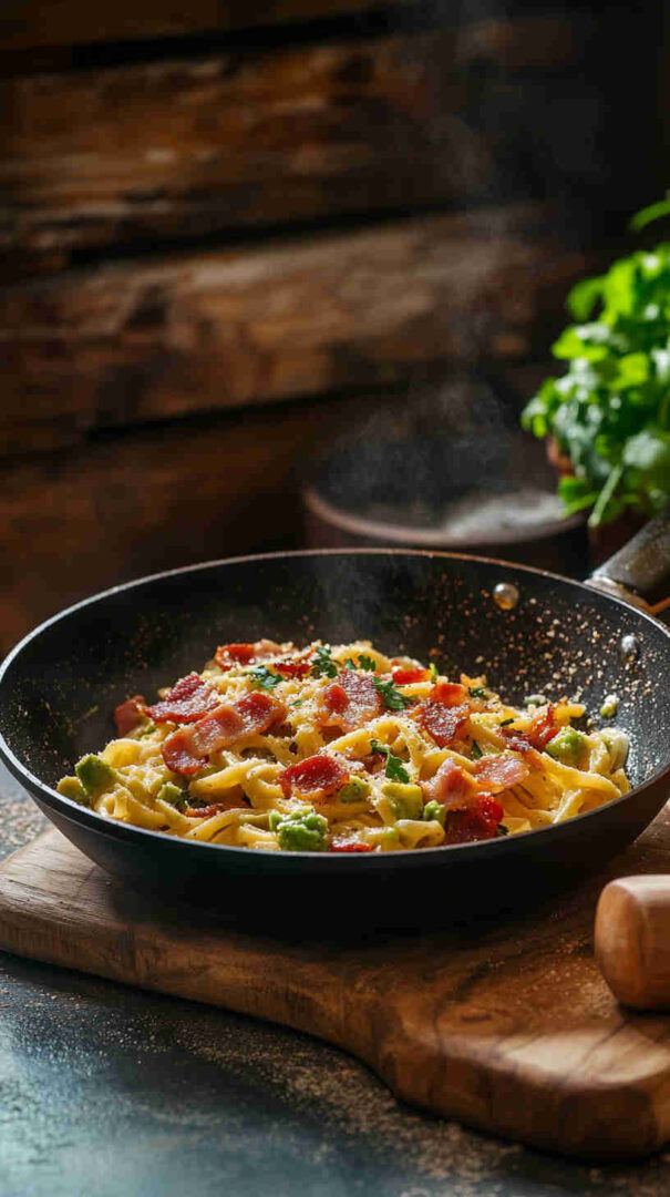 This dish delivers all the luxurious creaminess and salty-savory satisfaction of traditional carbonara without using raw eggs, making it safer, easier, and perfect for anyone who loves the classic but wants a modern twist.