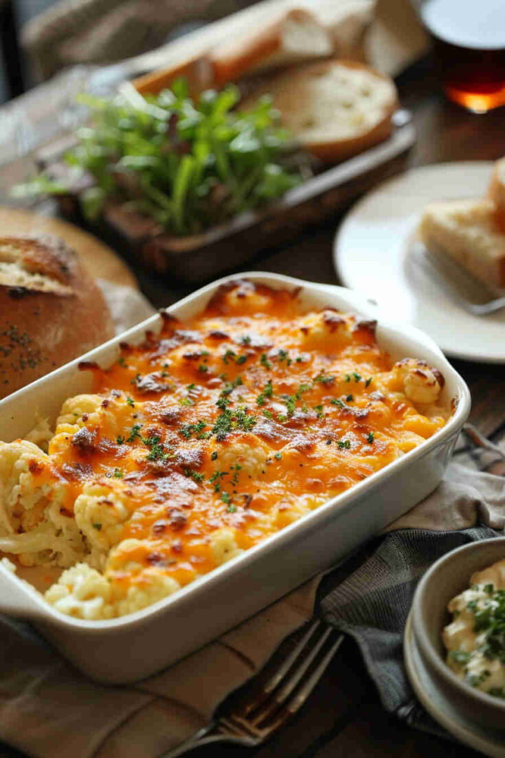 This Baked Cheesy Cauliflower Casserole features tender cauliflower with a creamy cheese sauce. Perfect for a healthy dinner, it’s a simple recipe that blends rich, savory flavors into a nutritious dish with minimal effort.