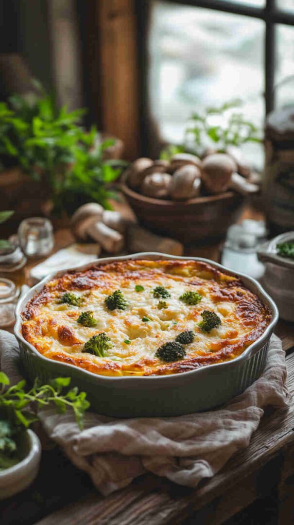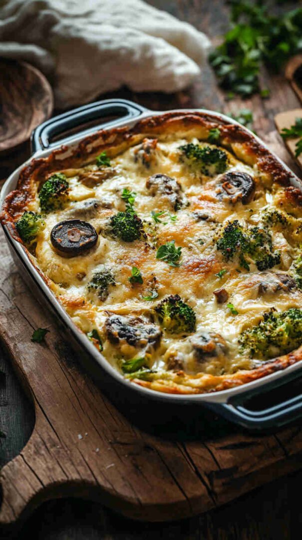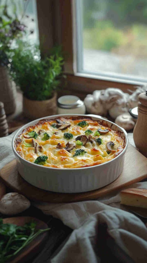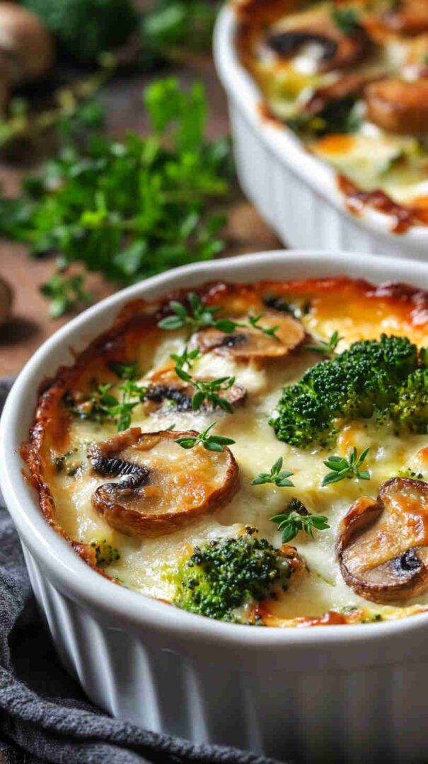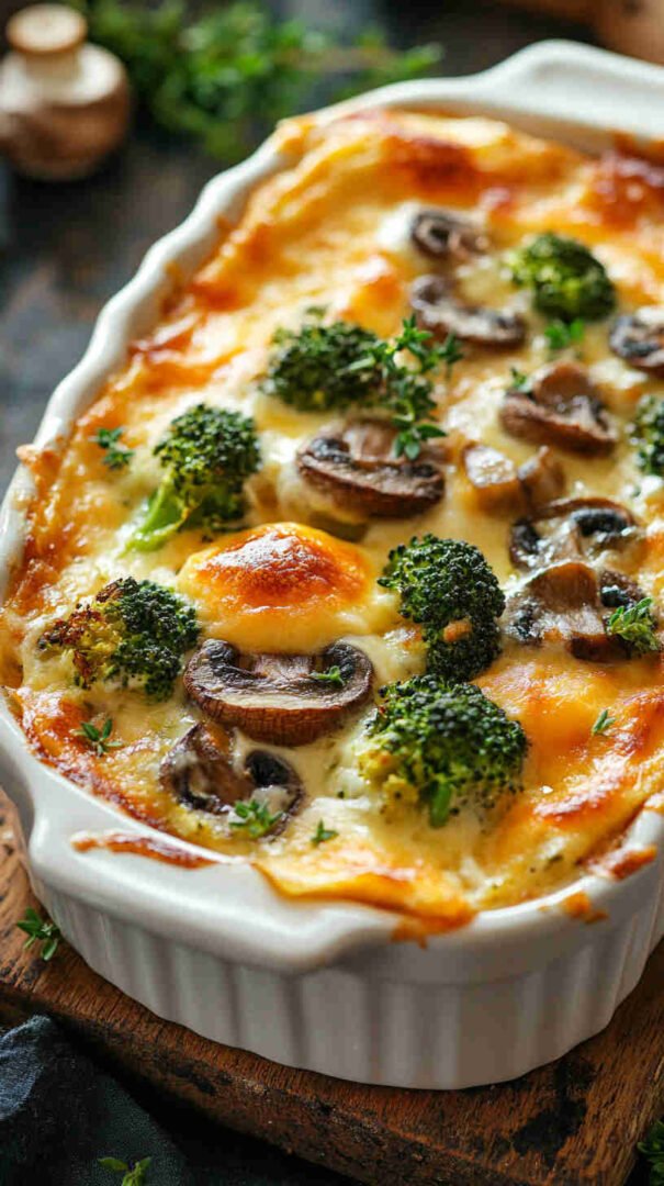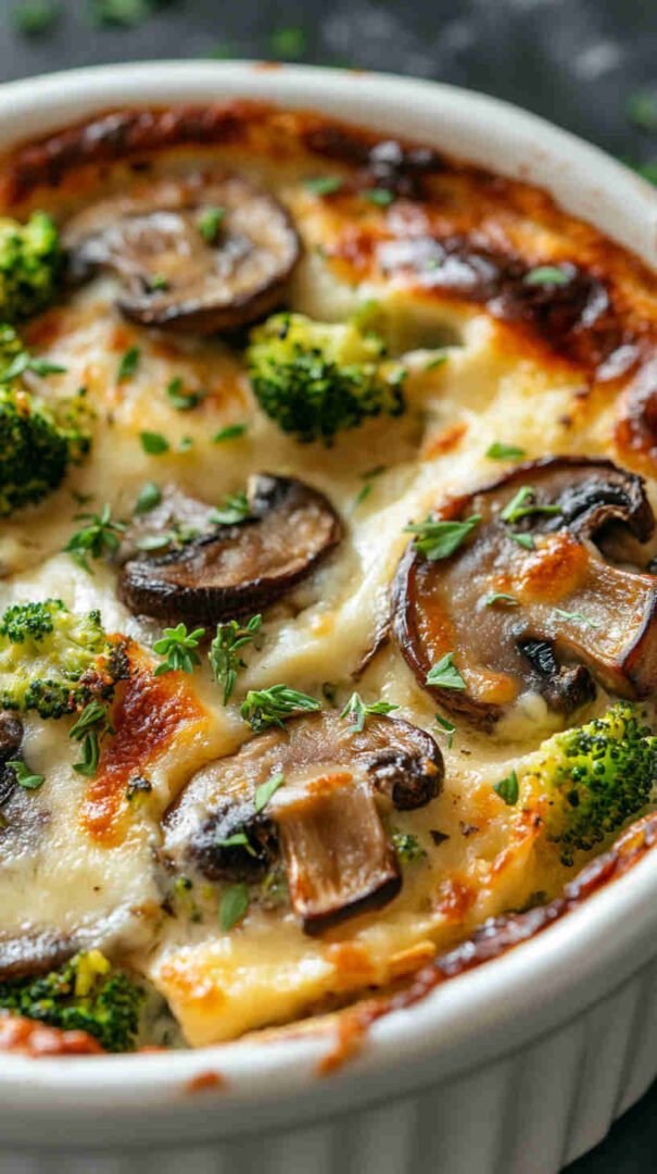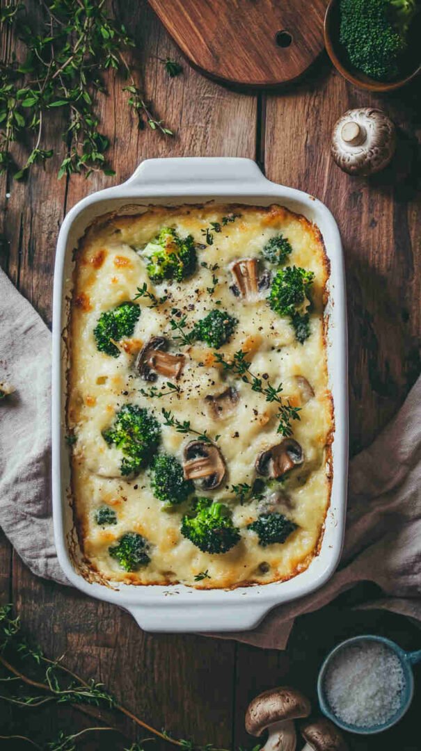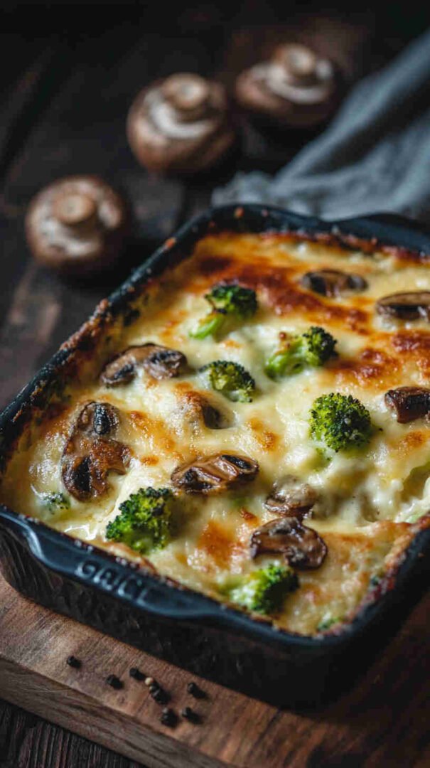 Creamy, cheesy baked broccoli and mushrooms with golden topping — cozy, veggie-packed comfort food everyone loves.