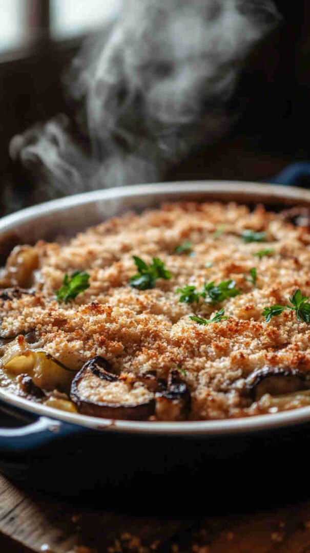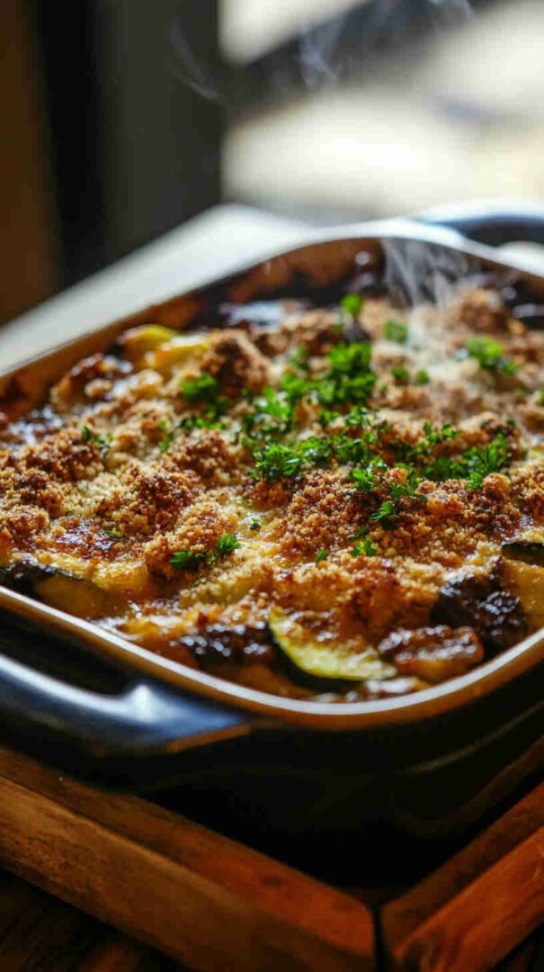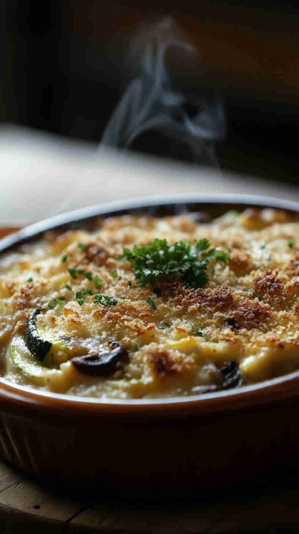 Creamy, cheesy baked zucchini and mushrooms with golden breadcrumb topping — cozy, flavorful, and utterly irresistible.