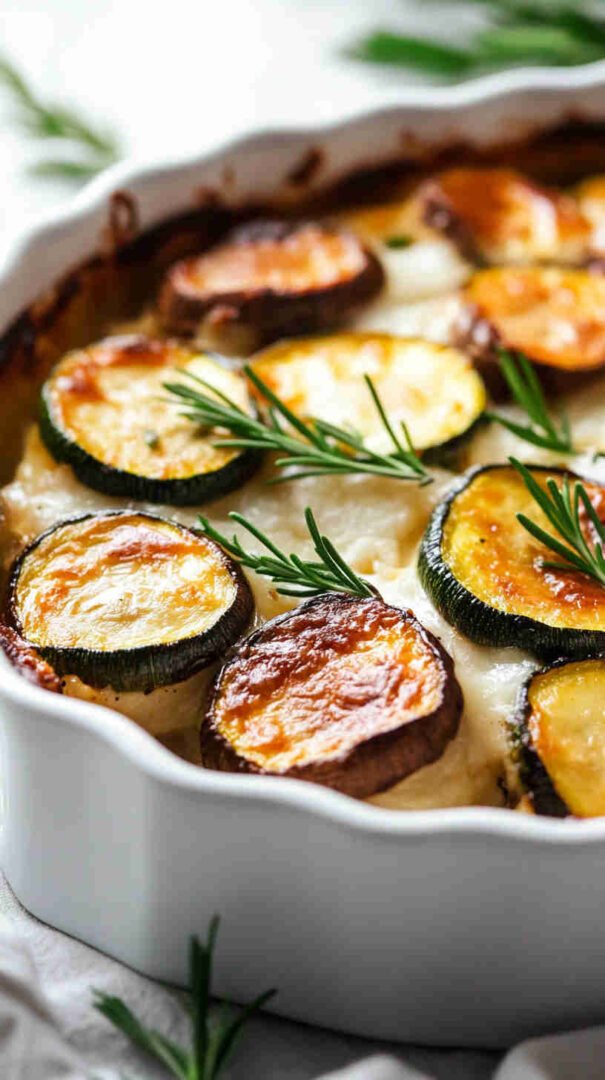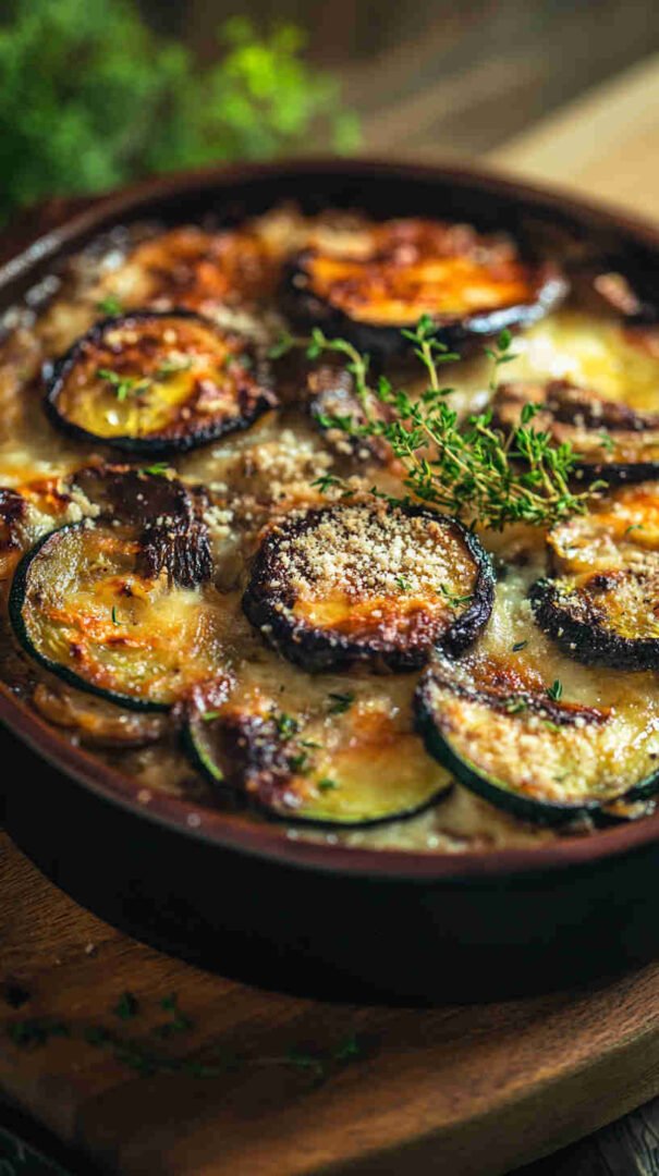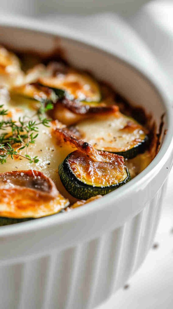 - Salt the zucchini slices lightly and let them sit 15–20 minutes to draw out excess moisture, then pat dry thoroughly — this prevents a watery gratin.