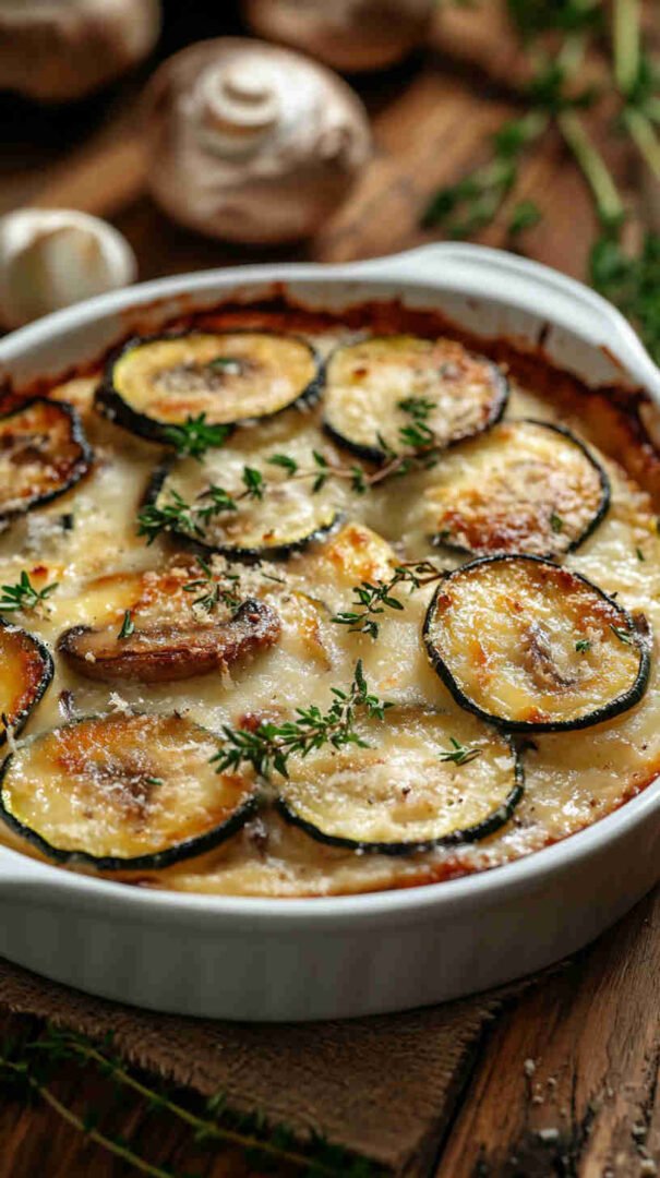 You’ll fall head over heels for this Baked Mushroom and Zucchini Gratin because it transforms simple, everyday vegetables into something truly special. The zucchini stays tender yet holds its shape, while the mushrooms bring deep, savory umami that pairs magically with the luxurious cream sauce infused with garlic and herbs.