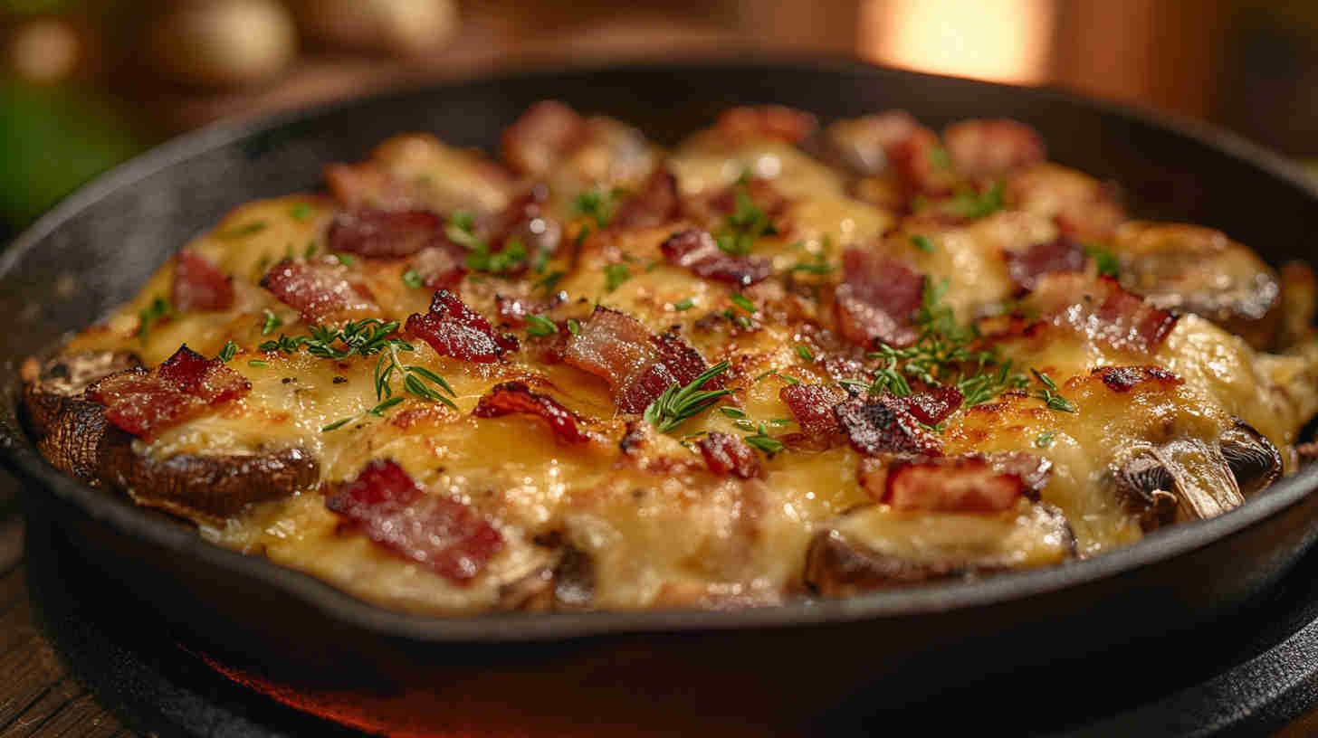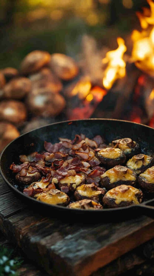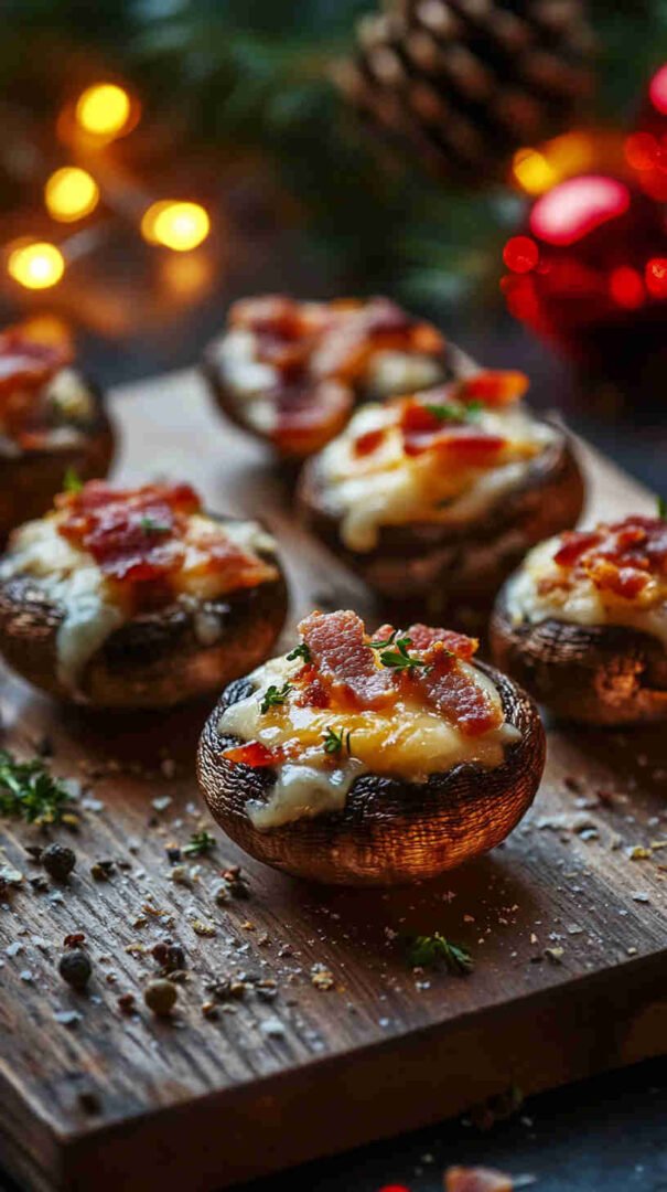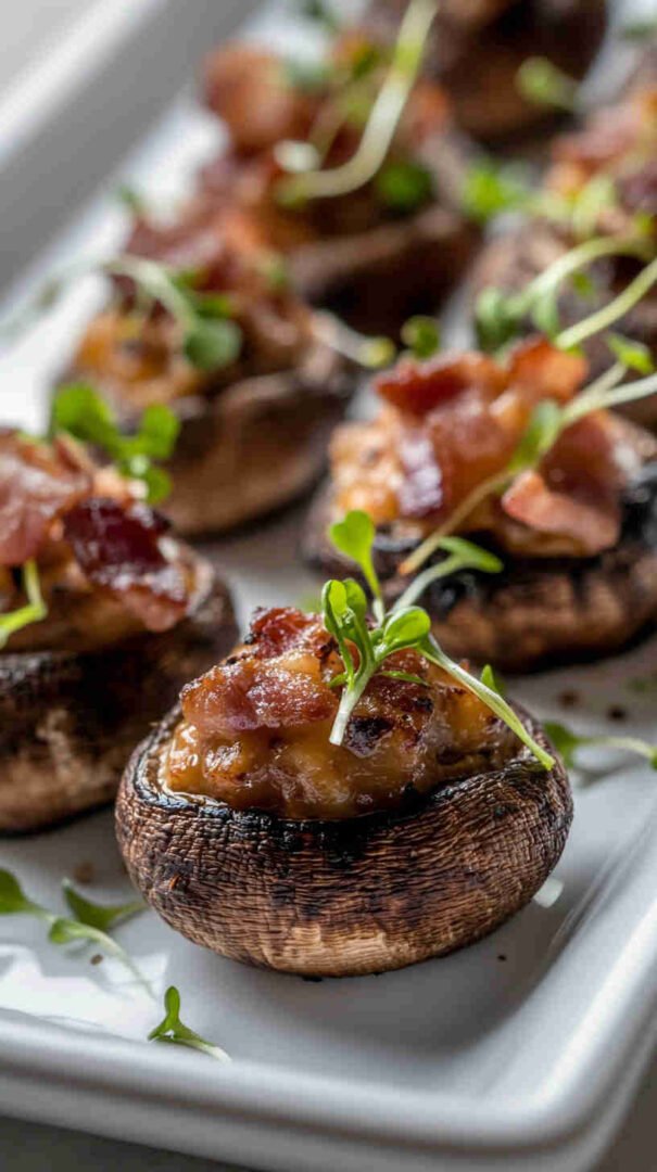 Cheesy, bacon-loaded stuffed mushrooms baked until golden — smoky, savory, and utterly addictive bites!