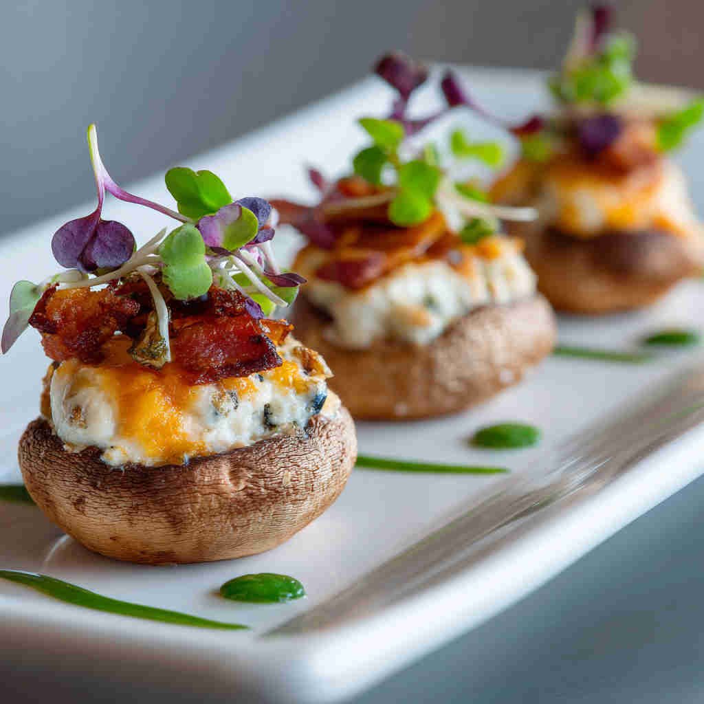 Cremini mushrooms (also called baby bella) are ideal here — they have a deeper, meatier flavor than white button mushrooms and hold their shape beautifully when stuffed and baked. Thick-cut bacon brings smoky richness and satisfying crunch; choose quality bacon for the best taste.