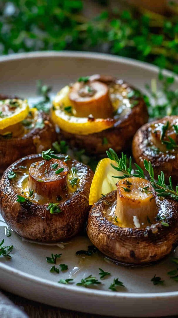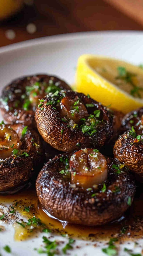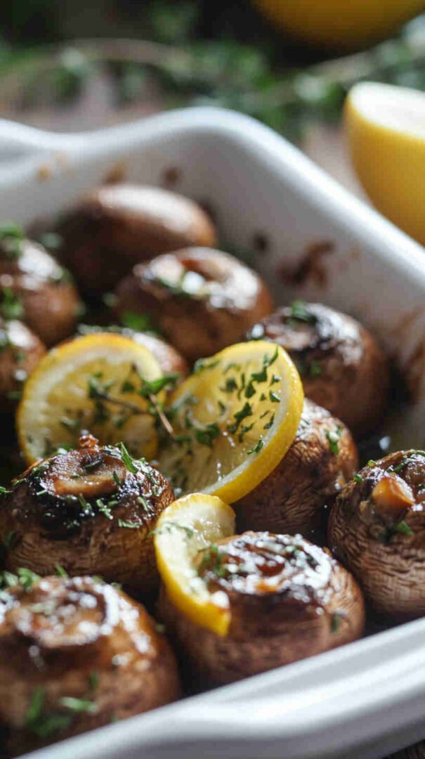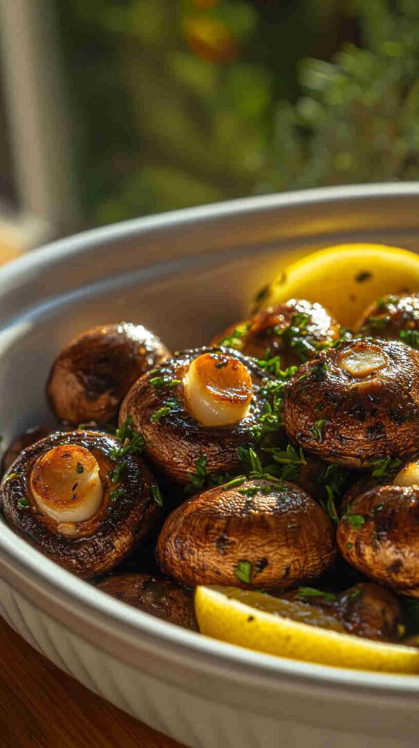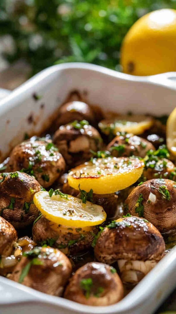 Golden baked mushrooms bursting with garlic, zesty lemon, and fragrant fresh herbs — simple, savory, and utterly delicious.
