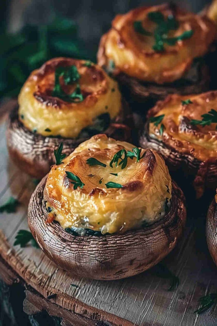 Baked Stuffed Mushrooms with Spinach, a savory, cheesy appetizer perfect for gatherings.