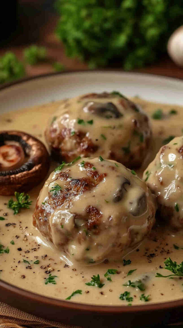 - Serve with joy — Garnish with fresh parsley. Dish over mashed potatoes, noodles, or rice. Grab a fork and dive into pure comfort—enjoy every creamy, mushroomy bite!