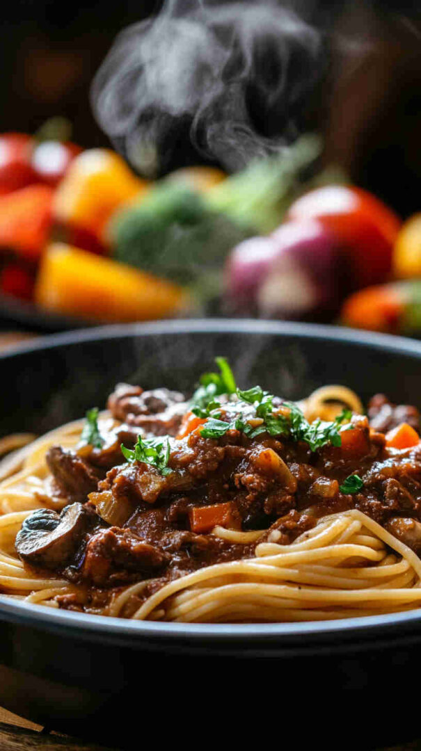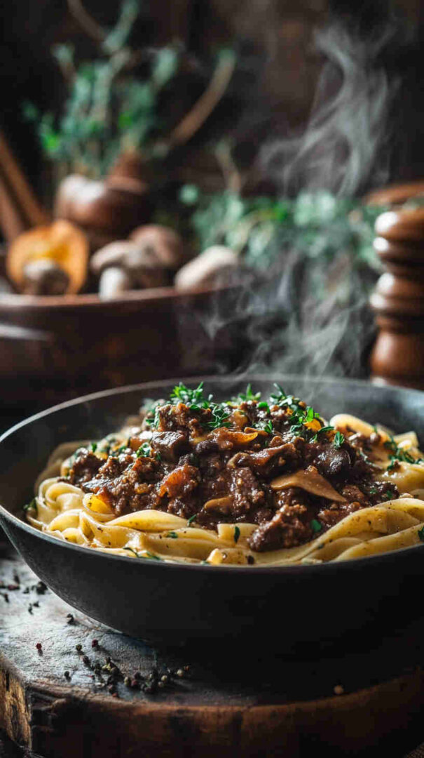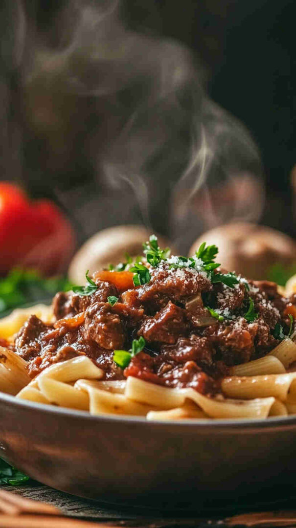 Vegetarian? Omit beef and double mushrooms (add lentils or walnuts for texture). For gluten-free, serve over zucchini noodles or gluten-free pasta. Dairy-free: skip cheese topping. Use white wine instead of red for a lighter twist, or balsamic vinegar if no wine.