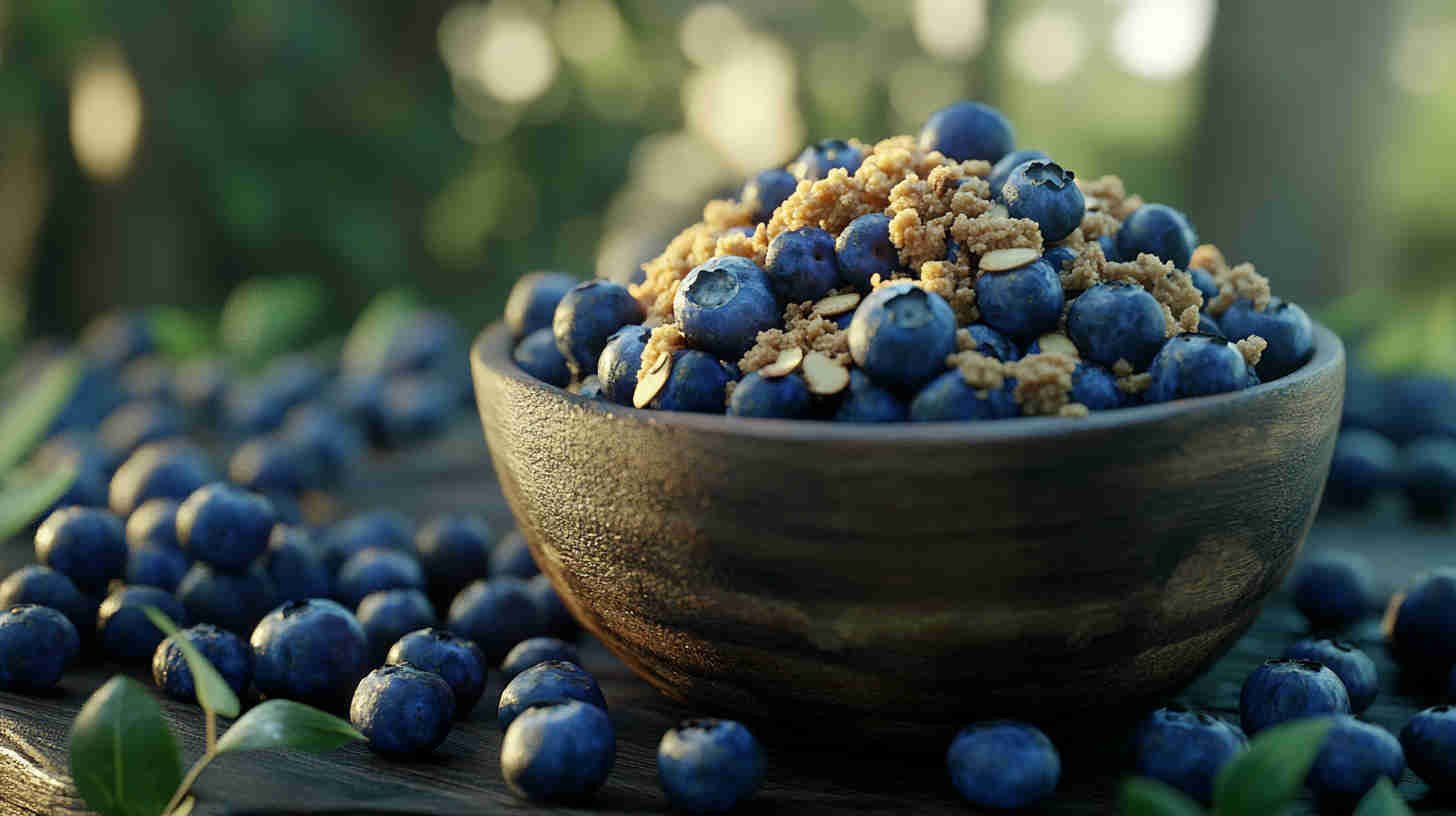 Easy healthy blueberry almond crumble: juicy berries under crunchy nutty topping—naturally sweetened, gluten-free friendly dessert perfection.