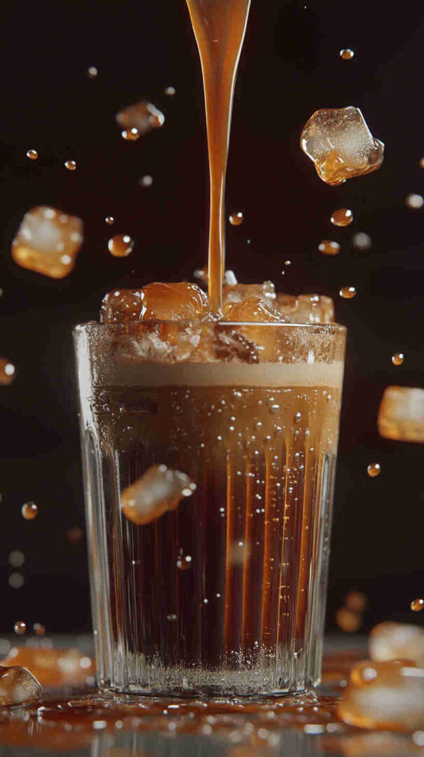 - Carefully strain or pour the beautifully shaken espresso mixture over the ice, letting the light foam settle invitingly on top.