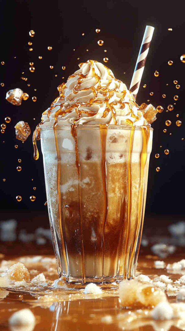 Shaken vigorously with ice until frothy and silky, this sweet, caramel-kissed coffee drink delivers café-quality indulgence with a cozy twist in every refreshing sip.