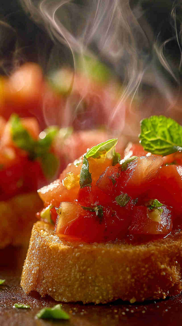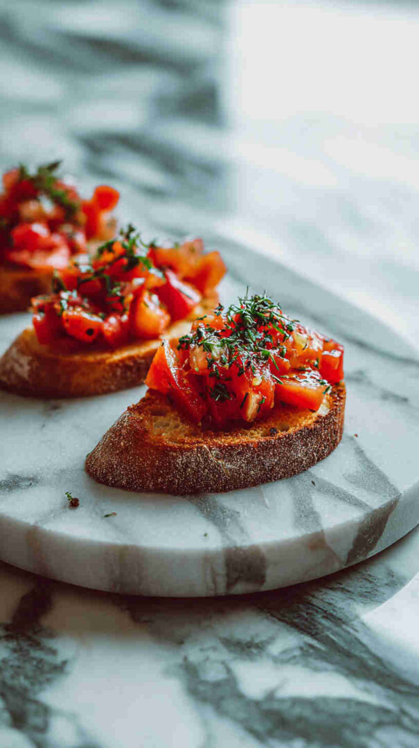 - Assemble with love — Spoon a generous amount of tomato mixture onto each garlic-rubbed toast slice—don’t be shy, but don’t drown it either. Let some juices soak in for flavor.