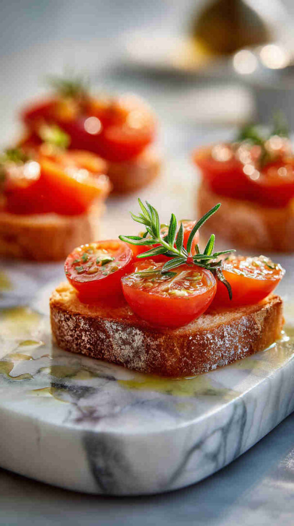Toast bread until golden and firm so it holds up under the topping; rubbing with a cut garlic clove while still warm infuses incredible aroma without overpowering. Use high-quality extra virgin olive oil—it’s a starring ingredient here. Don’t overload each slice—keep it light and elegant. Serve immediately after assembling to preserve crunch.