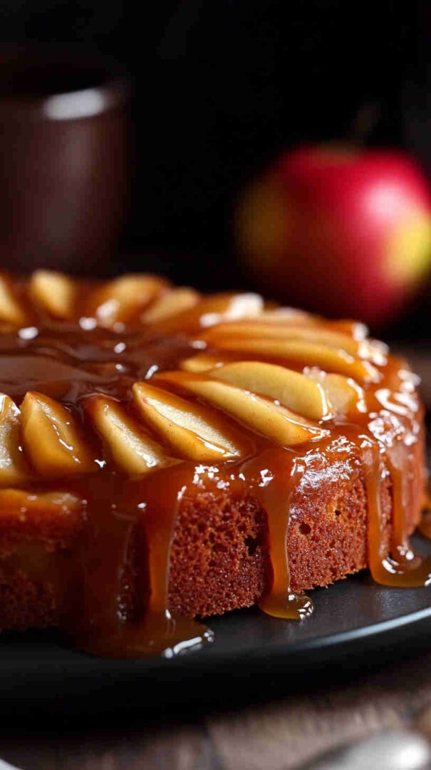 Caramel Apple Upside-Down Cake features tender cinnamon-spiced cake topped with gooey homemade caramel and beautifully arranged sliced apples that caramelize to perfection. When flipped, the sticky-sweet apples become a glossy crown, delivering irresistible fall flavors in every moist, buttery bite—ideal for holidays or cozy gatherings.