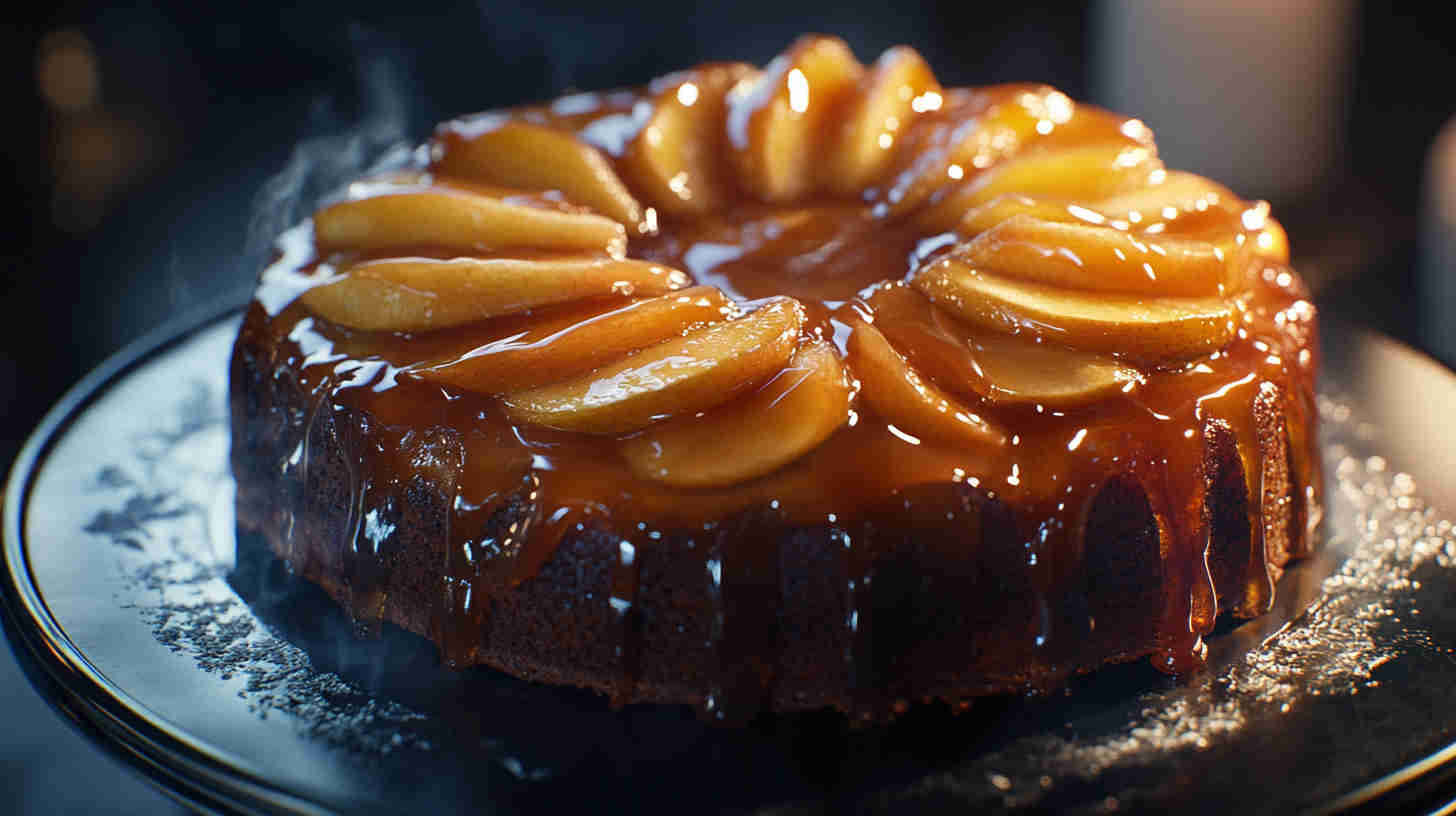 Run a knife around the edges before flipping, place a serving plate on top, and invert confidently in one smooth motion. If any apples stick, just rearrange them—no one will notice! For extra shine, brush the top with warm reserved caramel after flipping.