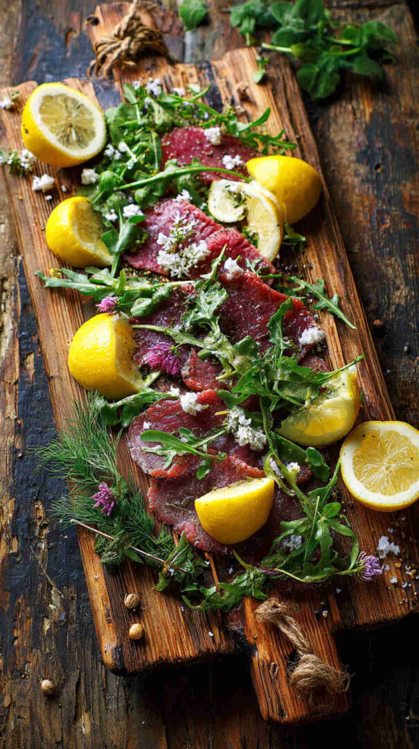 - Season simply and stylishly — Squeeze fresh lemon juice over the beef, then drizzle generously with extra virgin olive oil. Sprinkle with flaky sea salt and plenty of cracked black pepper.
