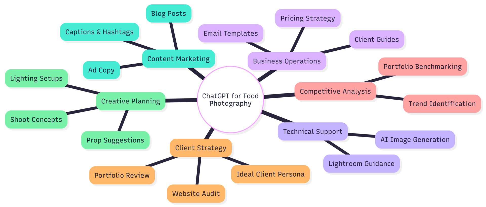 Running a food photography business means wearing a lot of hats — creative director, marketing manager, client coordinator, and accountant, all before you even pick up your camera. ChatGPT changes this equation by taking on the administrative and strategic workload so you can focus on what you actually do best: making food look irresistible.