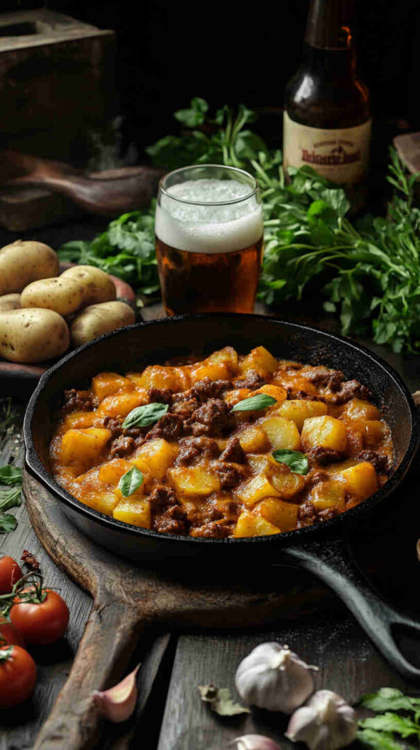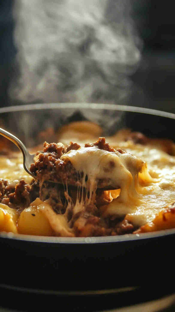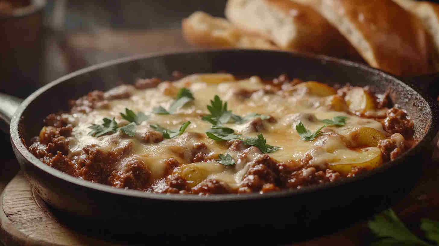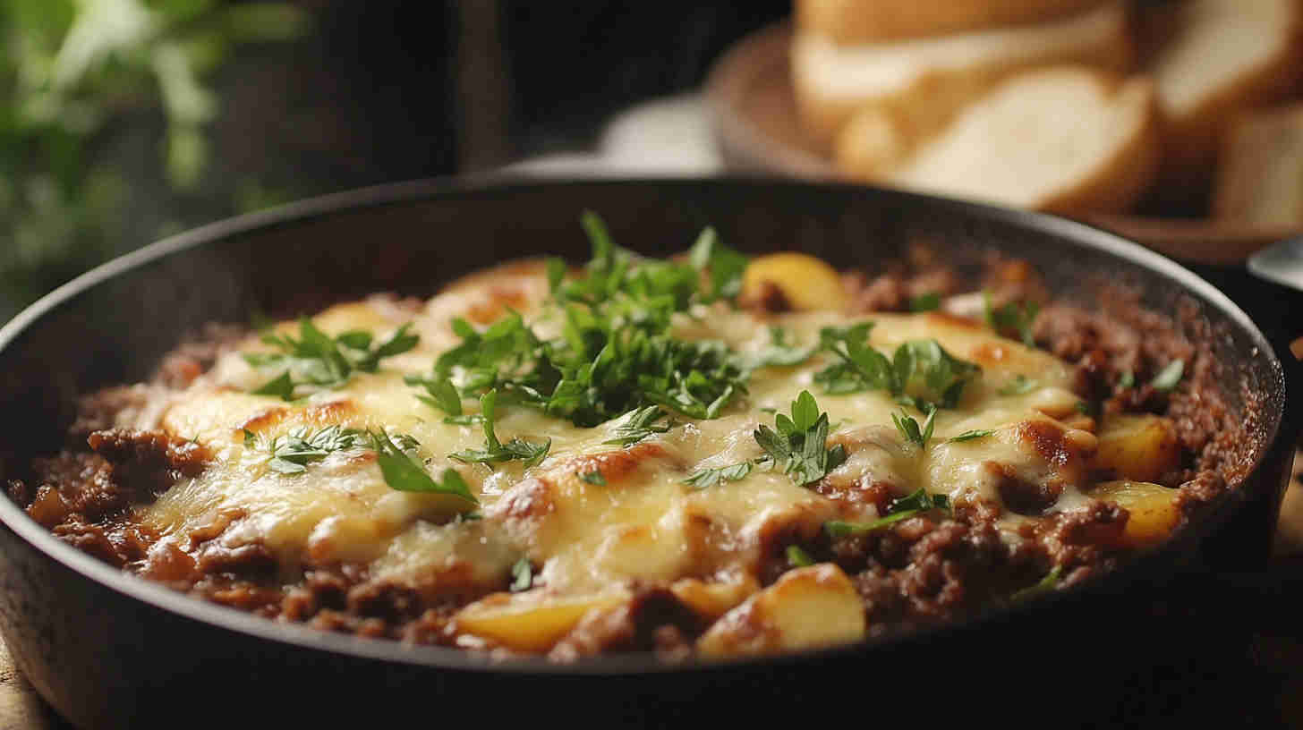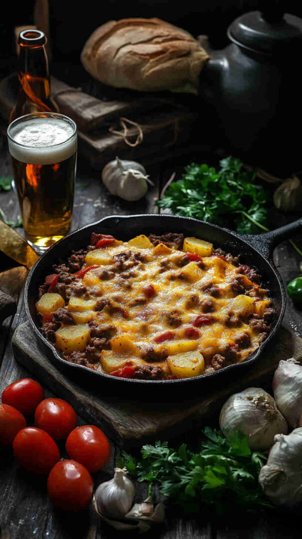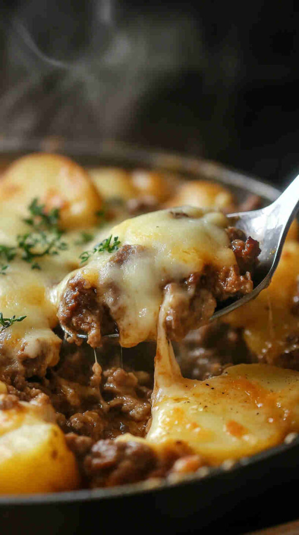 Golden-brown diced potatoes sautéed until crispy, mixed with savory seasoned ground beef, onions, garlic, and bell peppers, then smothered in gooey melted cheddar and mozzarella. Finished with a sprinkle of fresh herbs, this comforting skillet meal delivers crispy, cheesy, beefy goodness in every forkful—pure weeknight satisfaction.