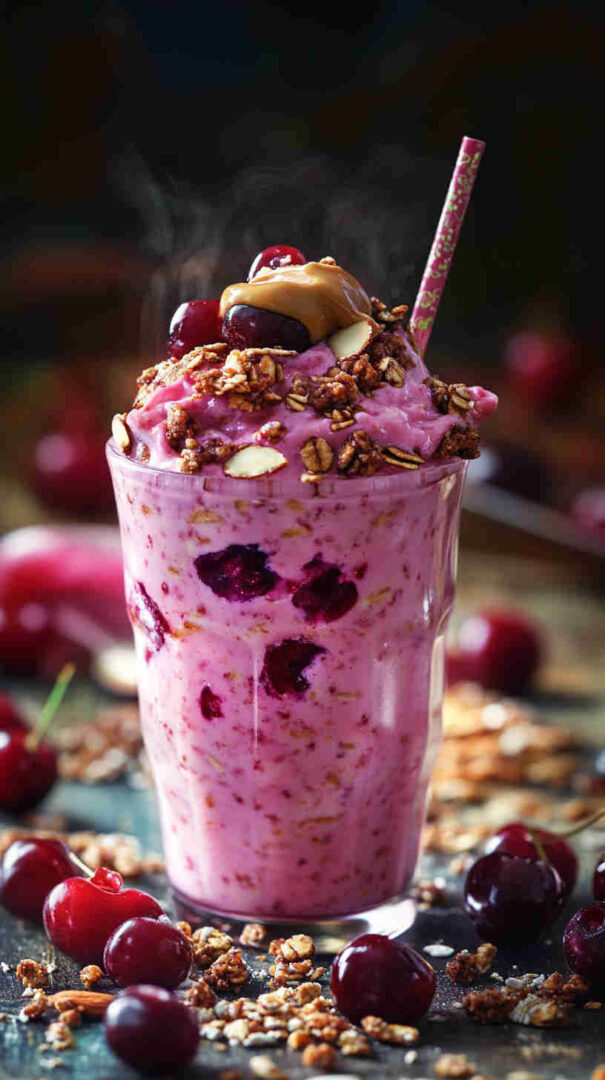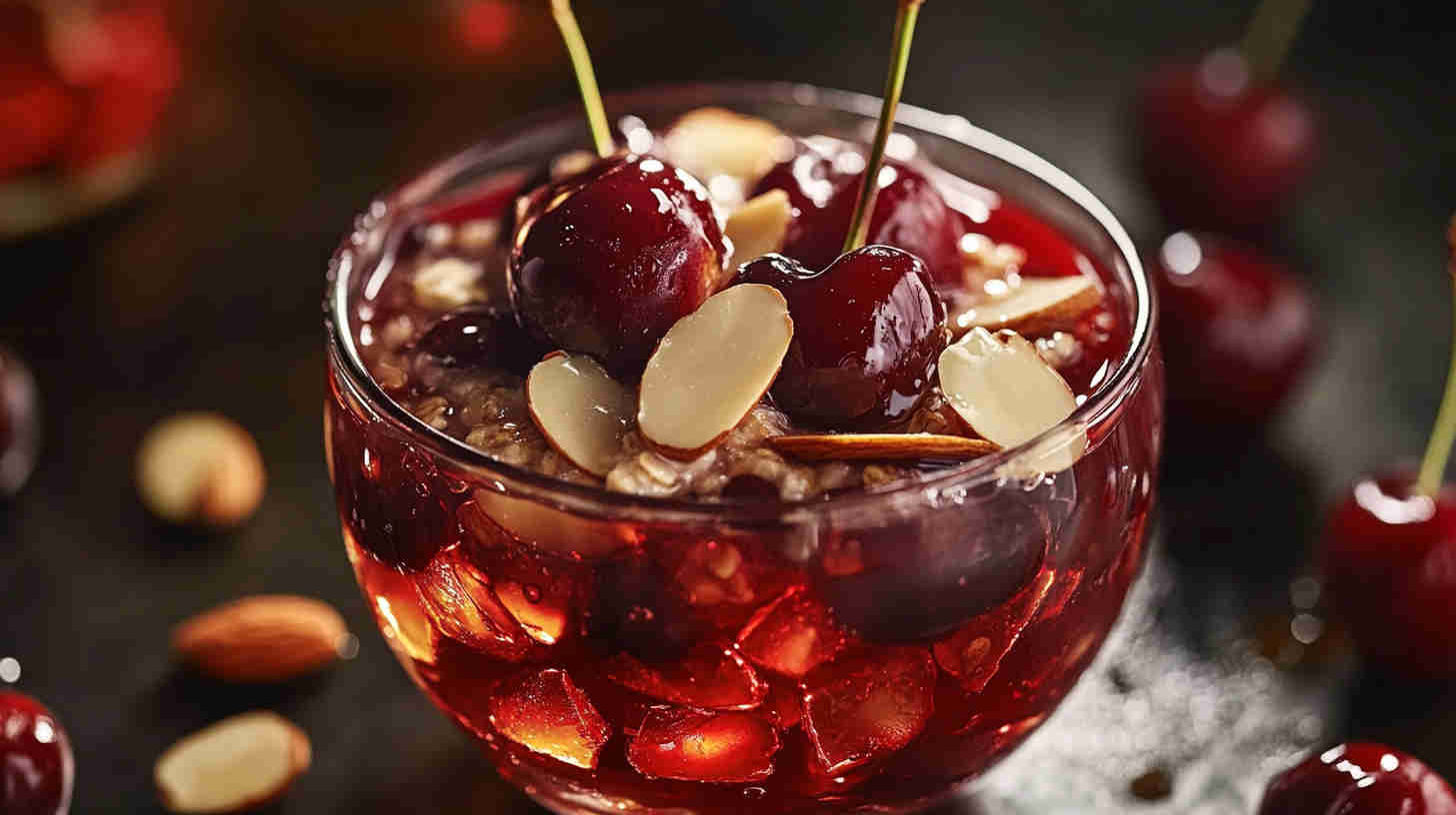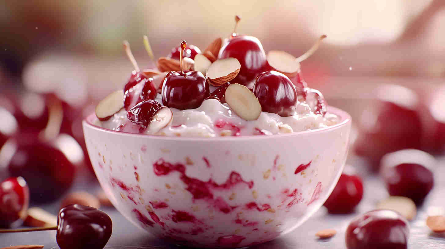 Creamy cherry almond overnight oats—juicy, protein-packed, no-cook breakfast with toasted crunch.
