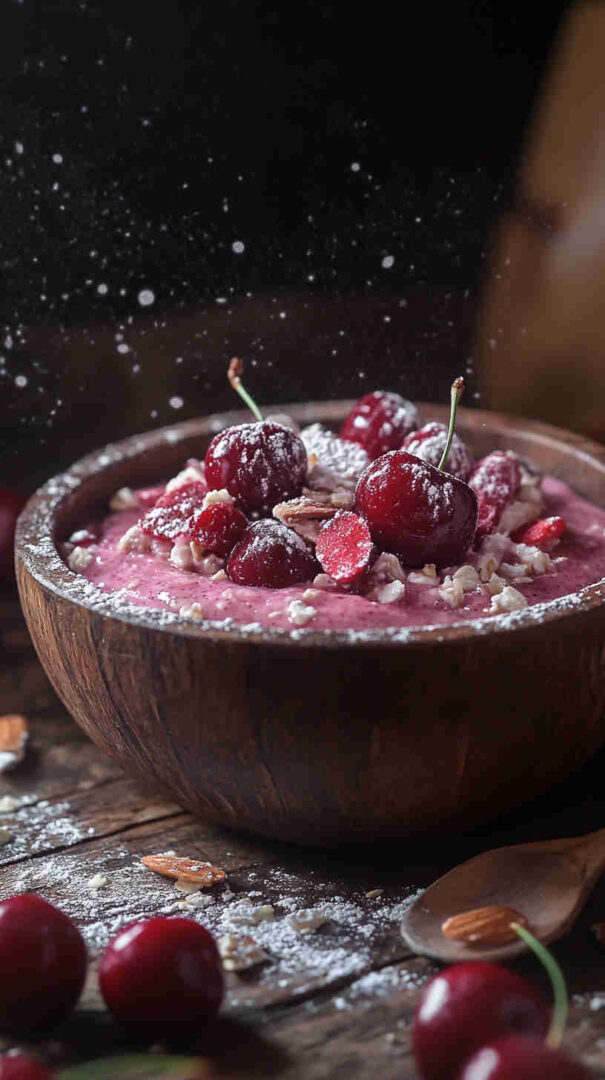 The flavor feels like a sophisticated cherry-almond clafoutis or Danish pastry in spoonable, guilt-free form, yet it’s naturally sweet with minimal added sugar and endlessly satisfying.