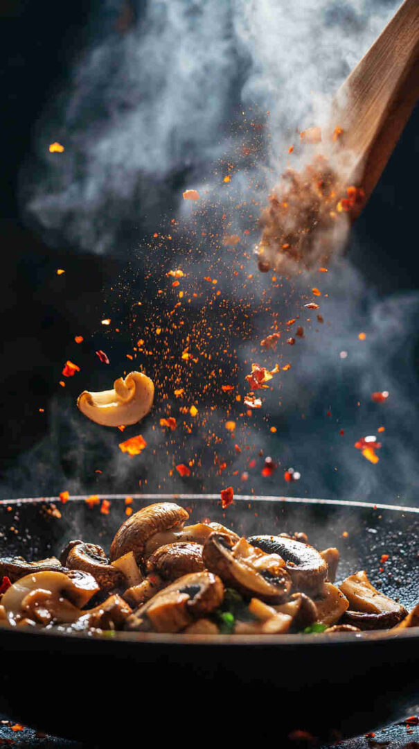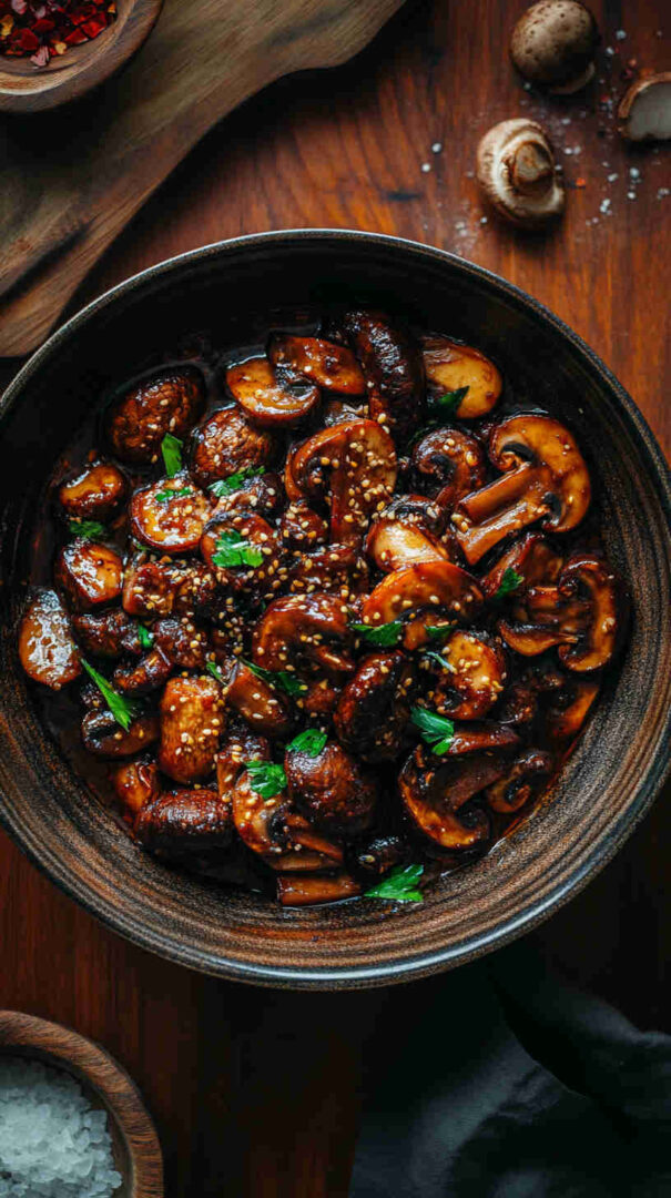 - Thicken to glossy perfection — Give the cornstarch slurry a quick stir, then pour it into the wok while stirring continuously. Cook for 1 minute until the sauce thickens and becomes beautifully glossy, coating every mushroom.